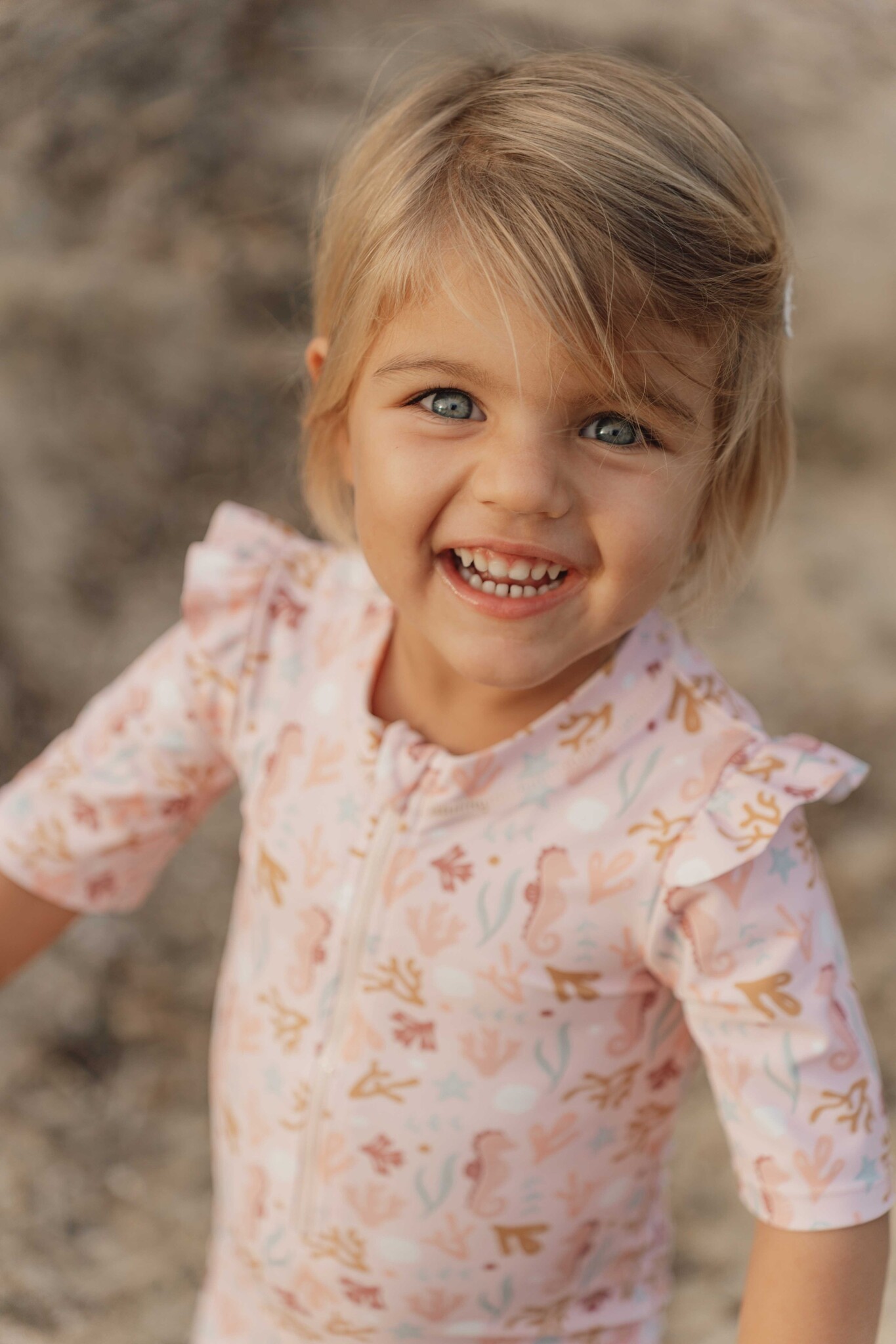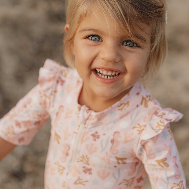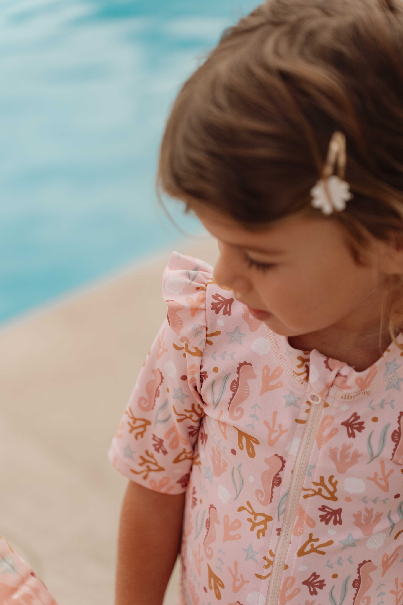 Beoordeel Little Dutch Zwempakje Korte Mouw Ruches Ocean Dreams Pink