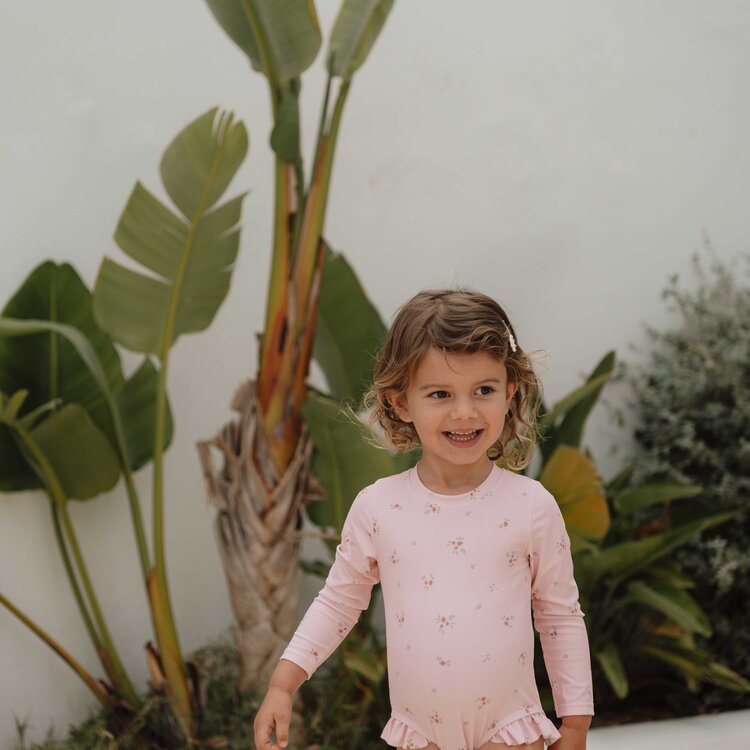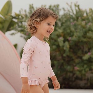 Gemaakt van UPF 50+ stof biedt dit badpak de ultieme bescherming tegen de zon. Door de mouwtjes hoef je je niet al teveel zorgen te maken dat het tere huidje van jouw kleintje kan verbranden in de zon.