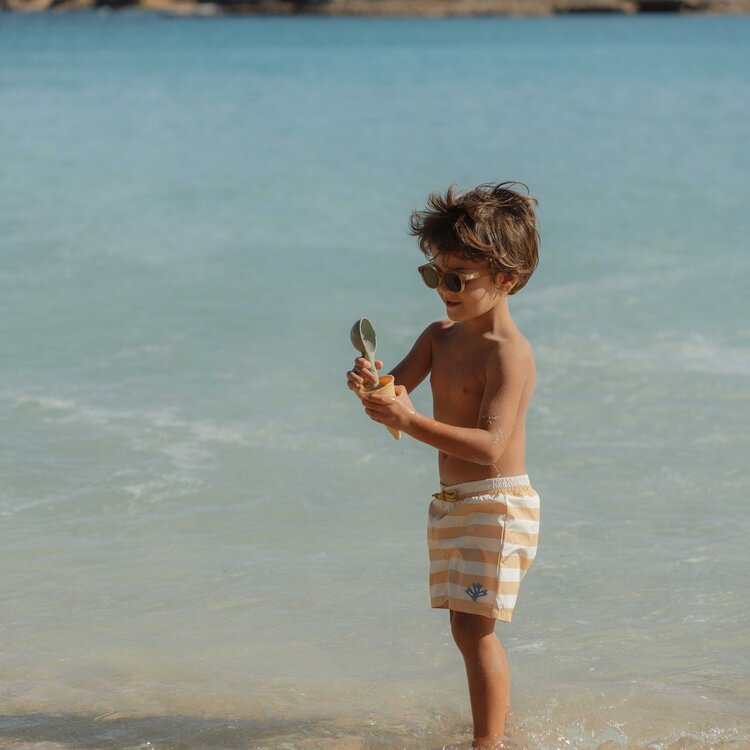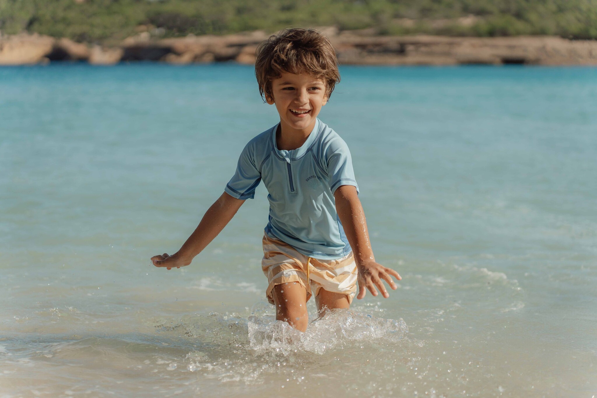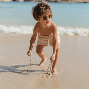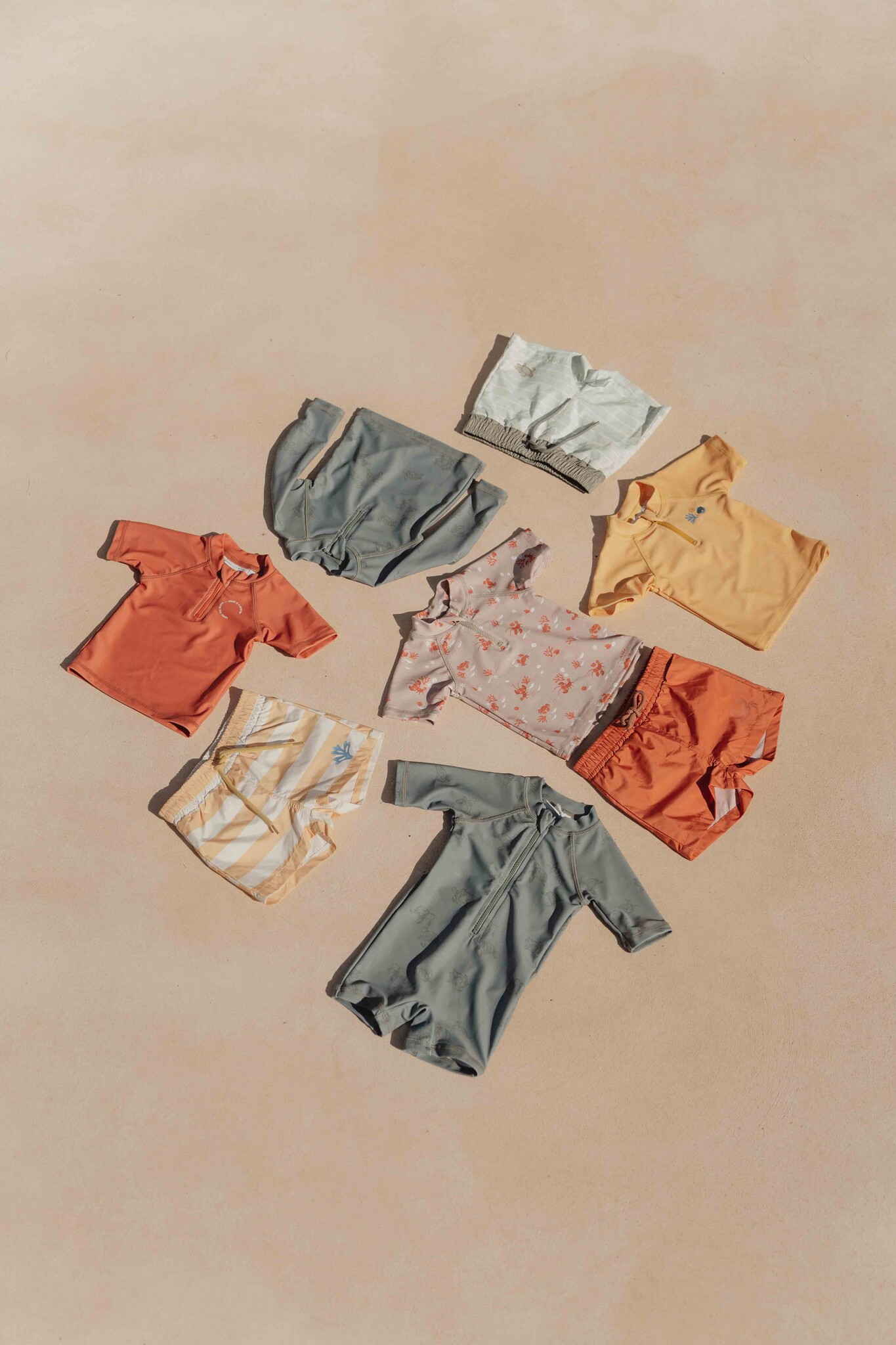Waar is het zwembad?!? Dit schattige zwembroekje van gerecycled polyester nodigt je uit om te zwemmen en te spetteren! De zachte en rekbare stof zorgt voor comfort, of je nu in het zwembad zwemt of buiten speelt in een opblaasbaar kinderzwembad.