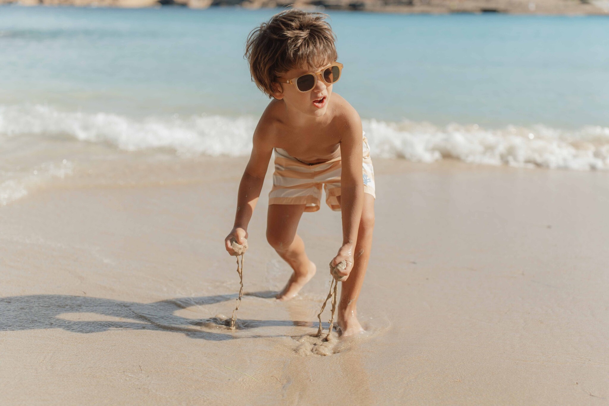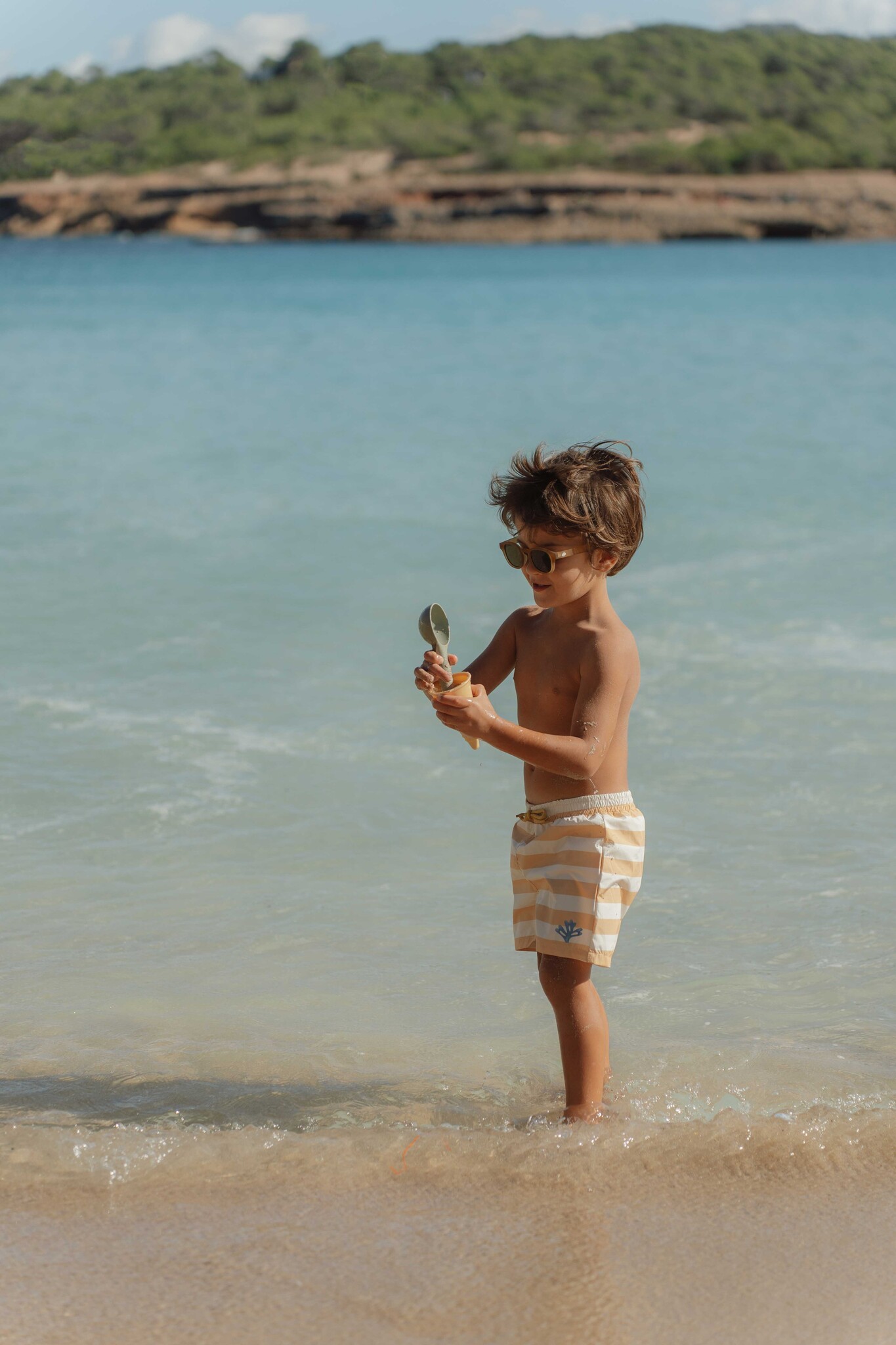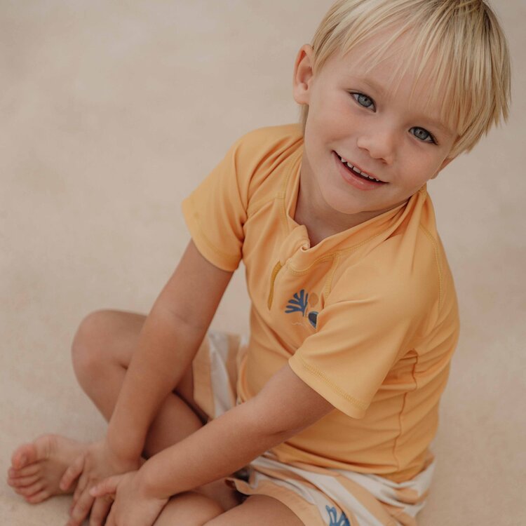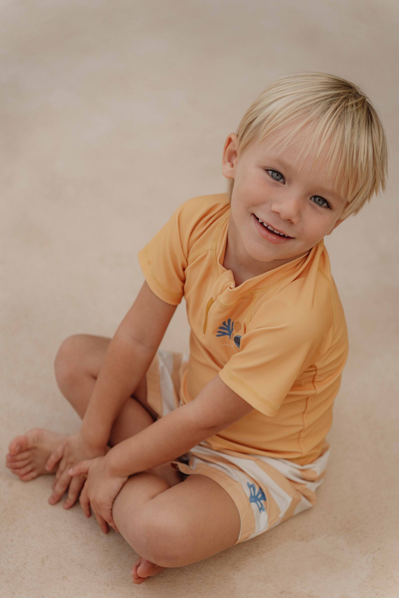 Waar is het zwembad?!? Dit schattige zwembroekje van gerecycled polyester nodigt je uit om te zwemmen en te spetteren! De zachte en rekbare stof zorgt voor comfort, of je nu in het zwembad zwemt of buiten speelt in een opblaasbaar kinderzwembad.