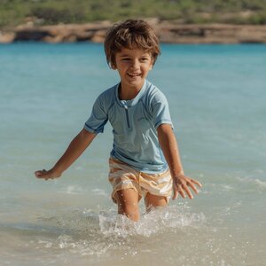 De zwembroek is gemaakt van UV beschermende stof en is verkrijgbaar in de maten 62/68, 74/80, 86/92 en 98/104. Combineer met een handdoek en je favoriete zomeritem en je hebt alles wat je nodig hebt voor urenlang waterplezier. Vergeet niet om altijd zonnebrandcreme te gebruiken om je kleintje te beschermen.
