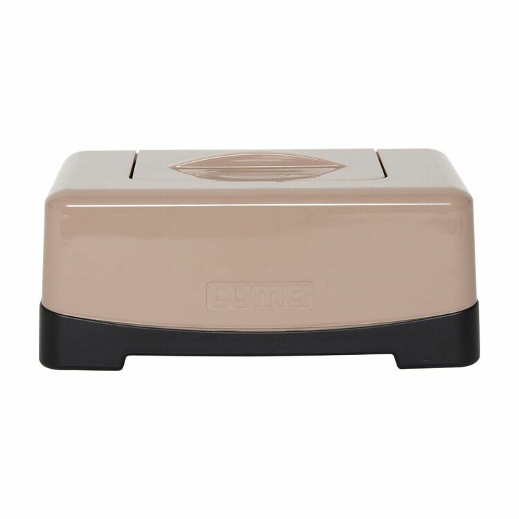 De box is gemaakt van kwalitatief hoogwaardig kunststof. Het klepje springt, met 1 druk op de knop, makkelijk open en sluit goed. Zo drogen de doekjes niet uit.