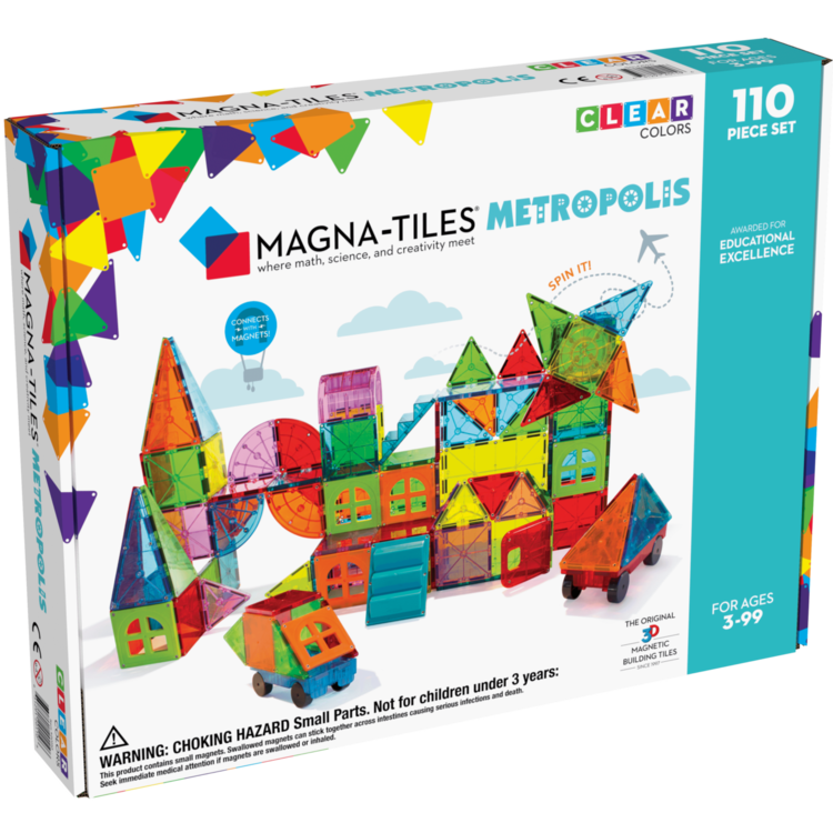 De MAGNA-TILES Metropolis Set is een van de grootste en meest veelzijdige sets binnen de MAGNA-TILES collectie. Met 110 magnetische bouwstukken – waaronder unieke vormen zoals ramen, trappen en wegen – kunnen kinderen complete steden bouwen met torens, bruggen, voertuigen en meer. De ideale set voor urenlang bouwen, spelen én ontdekken.
