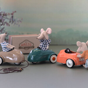 De metalen auto is een perfect vervoermiddel voor alle muizen. Hij past op alle muizen in de maten kleine broer/zus, grote broer/zus en mama/papa. Het bijgeleverde touwtje kan onder de auto worden bevestigd zodat het kind de auto kan trekken.
