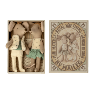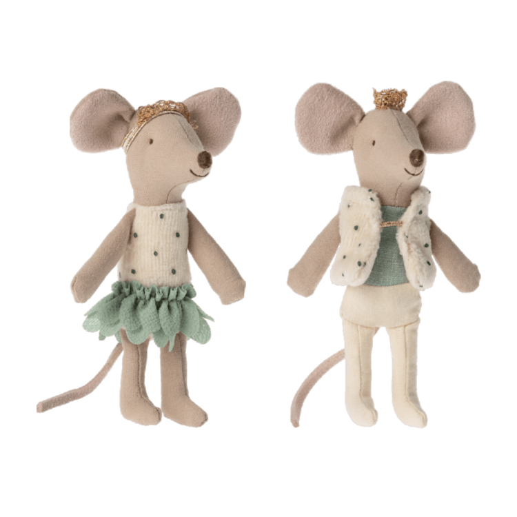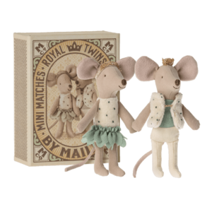 De koninklijke muizenfamilie wordt groter met deze tweeling. Ze dragen gouden kronen en mooie kleren. Ze slapen in een mooi versierd luciferdoosje.