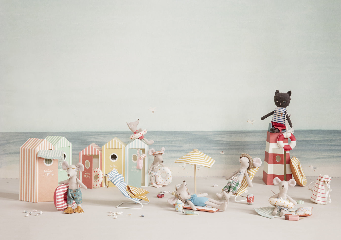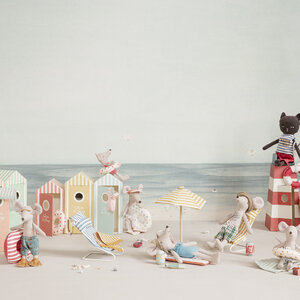 Vacation time. This mouse ia ready for a day at the beach, with all needed accessories and a beautiful striped beach house.