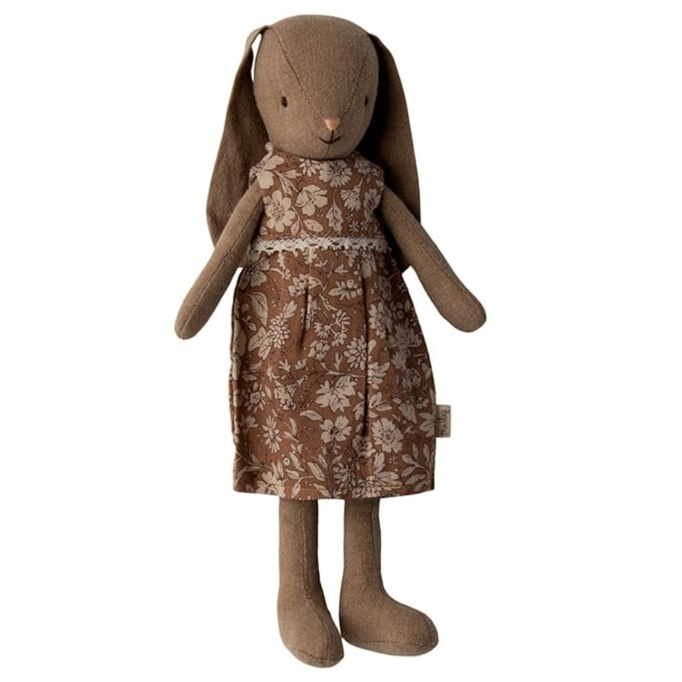 Met haar zachte bruine vacht en elegante jurkje is deze Maileg Bunny een plaatje om te zien. Ze straalt rust en zachtheid uit, perfect voor fantasierijke spelmomenten. Een tijdloze toevoeging aan elke Maileg-collectie.