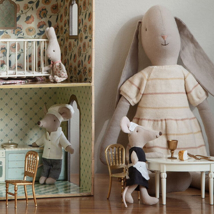 Deze muis zal zeker de perfecte hulp in de huishouding zijn. De muis is klassiek gekleed en klaar om alle gasten te bedienen. Ze heeft magneten in haar handen, zodat het makkelijker is om het metalen keukengerei vast te houden.