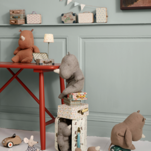 De klassieke Maileg metalen koffer in een nieuwe mooie print. Fantastisch voor elke gelegenheid; kleine geschenken, cadeaubonnen, opbergen van kleine spullen of voor klein zacht speelgoed.