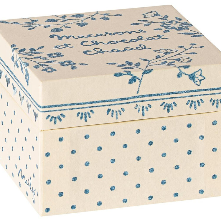 De Maileg Macarons Et Chocolat Plateau is een charmante toevoeging aan het speeluniversum van kinderen. Deze set bevat vier kleurrijke macarons, gepresenteerd op een prachtig handgeschilderd metalen cakestandje, compleet met decoratieve papieren servetten als finishing touch.