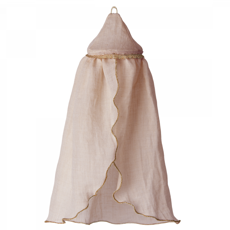 De klamboe is gemaakt van luchtige stof en voorzien van een decoratieve lus, zodat je hem gemakkelijk boven een bed kunt hangen. De subtiele kleur en delicate details zorgen ervoor dat hij mooi combineert met andere Maileg-meubels en accessoires. Een romantische finishing touch die elke miniatuurkamer compleet maakt.