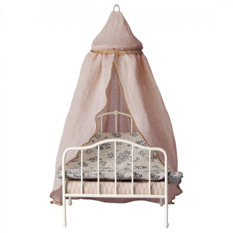 De Maileg Miniatuur Klamboe in een zachte rozetint geeft het bed van je muisjes en konijntjes een dromerige, knusse uitstraling. Dit charmante accessoire brengt extra sfeer in de slaapkamer en maakt het rollenspel nog echter en gezelliger. Perfect voor het creëren van een warme en uitnodigende slaapomgeving in het Maileg “House of Miniatures”.