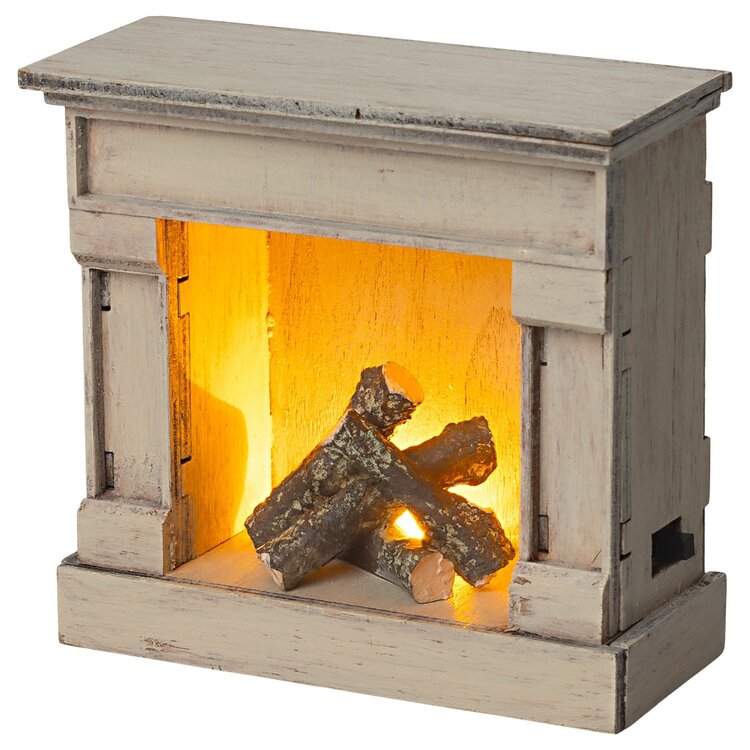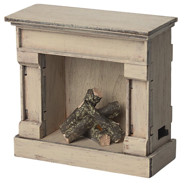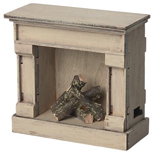 Use this wooden fireplace to warm your miniature home. It has an authentic look and a vintage finish. Remember to turn off the light when your friends go to bed. An adult can change the battery, which is non-rechargeable.