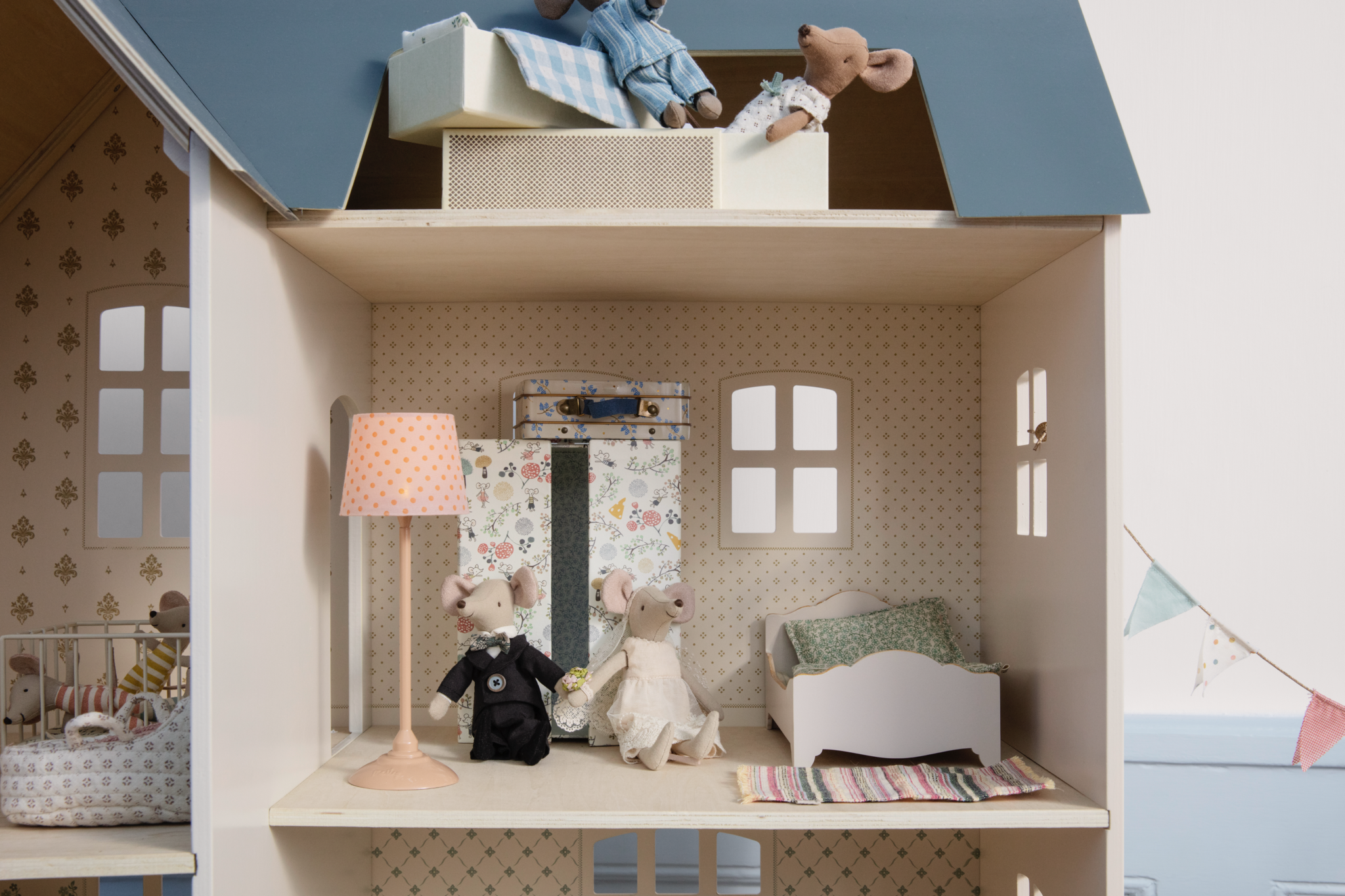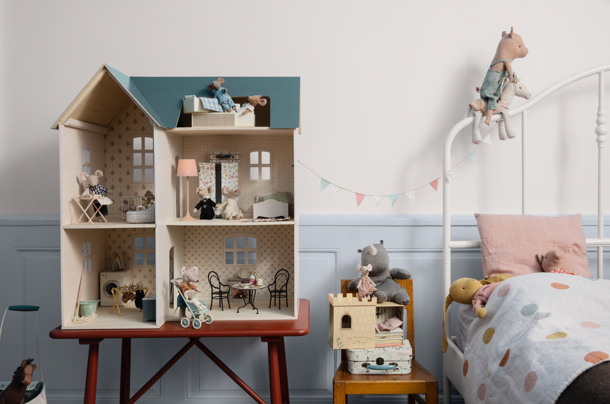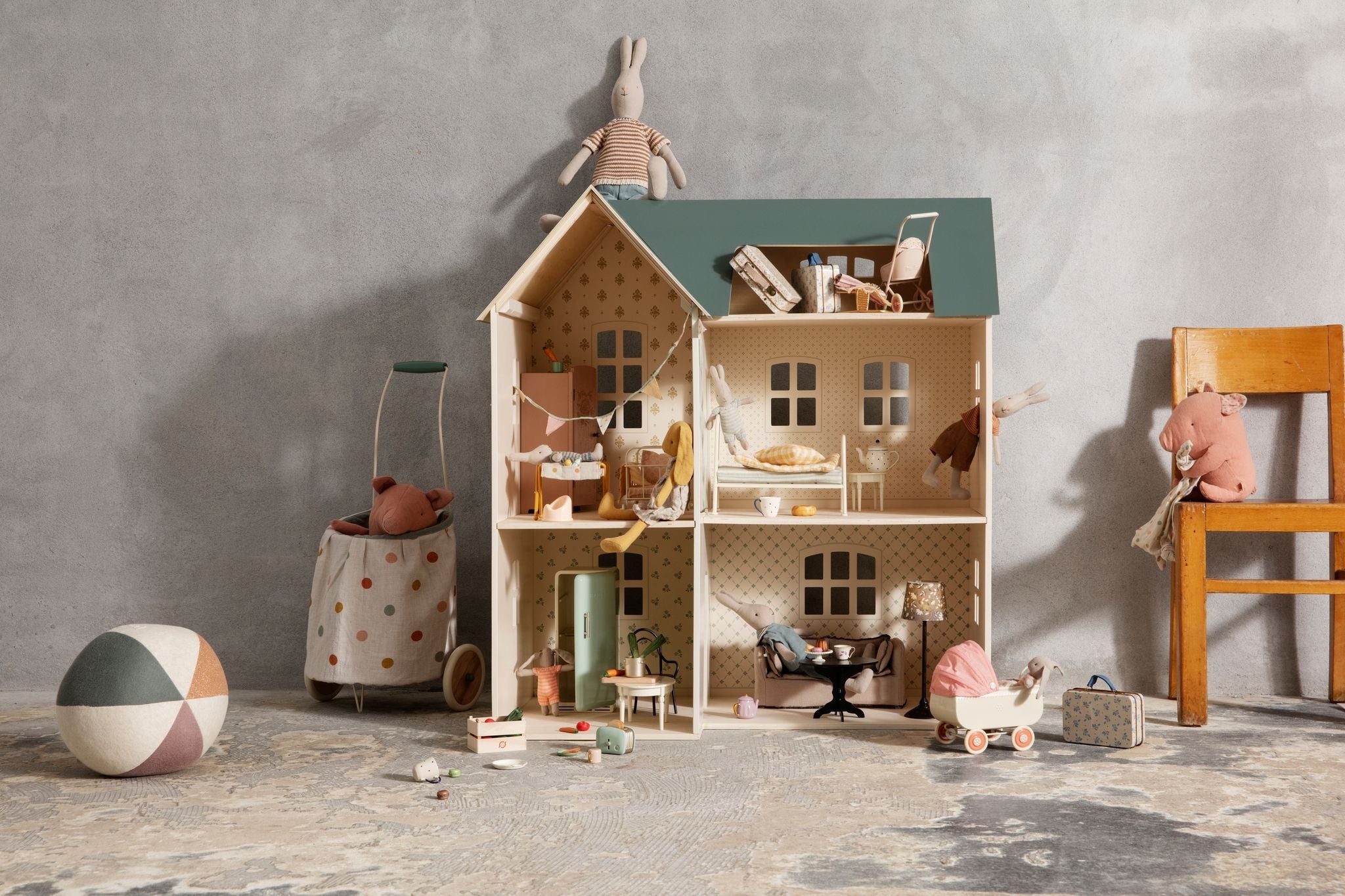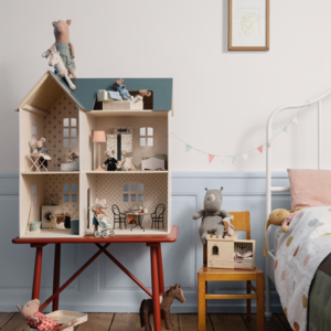 Exclusief houten poppenhuis. Perfect voor muizen, konijntjes en al je Maileg vriendjes. Personaliseer met je favoriete Maileg meubeltjes. Wordt plat verpakt geleverd en is eenvoudig in elkaar te zetten. Gemonteerde afmeting 80x40x72 cm (hxdxb) - wordt geleverd zonder meubilair.