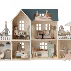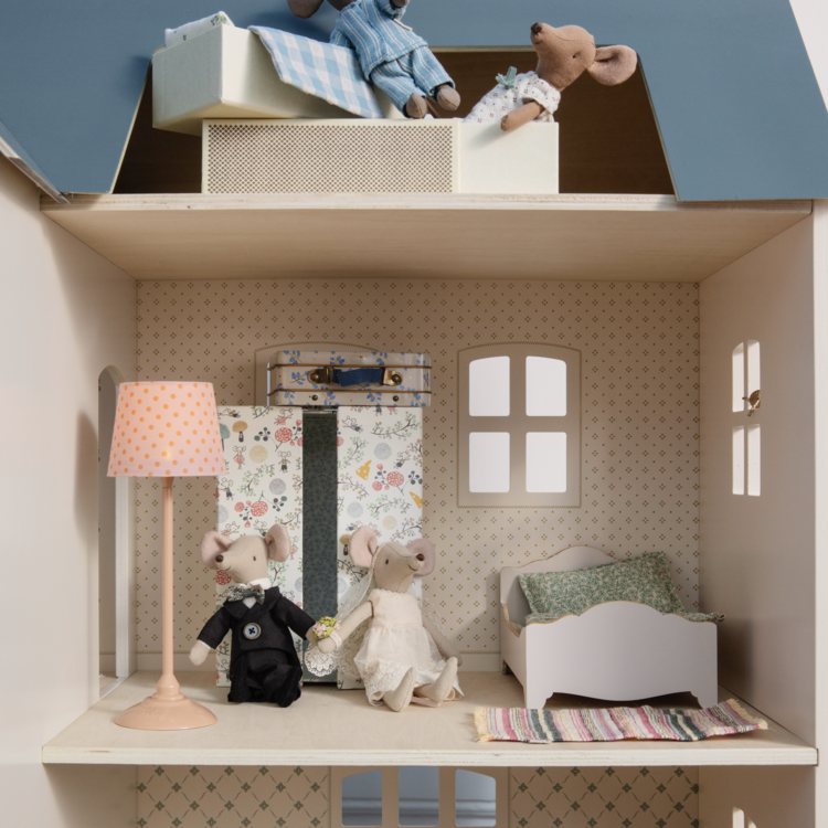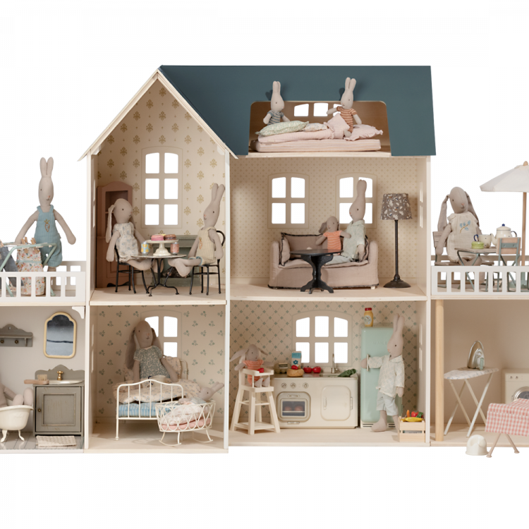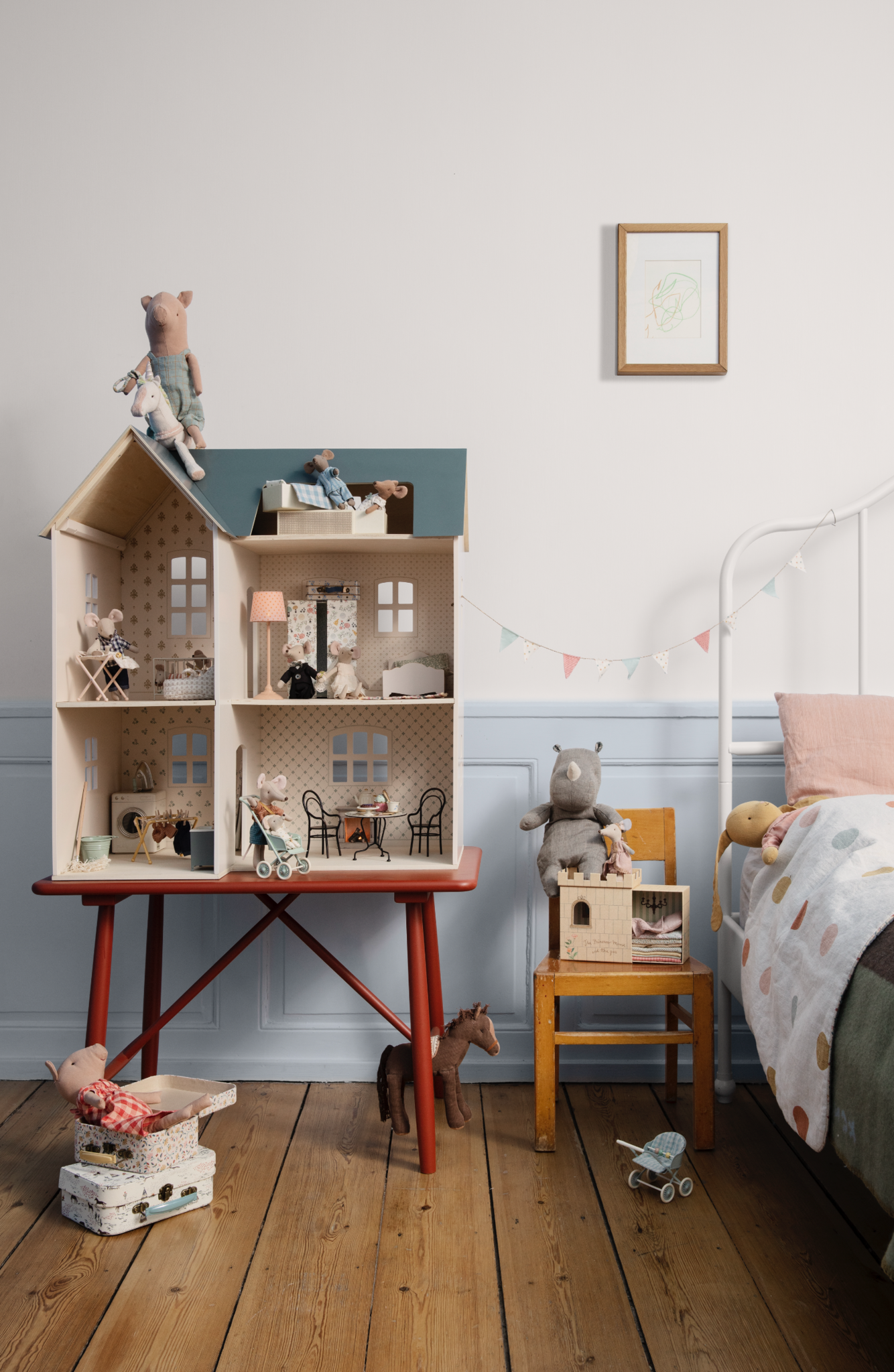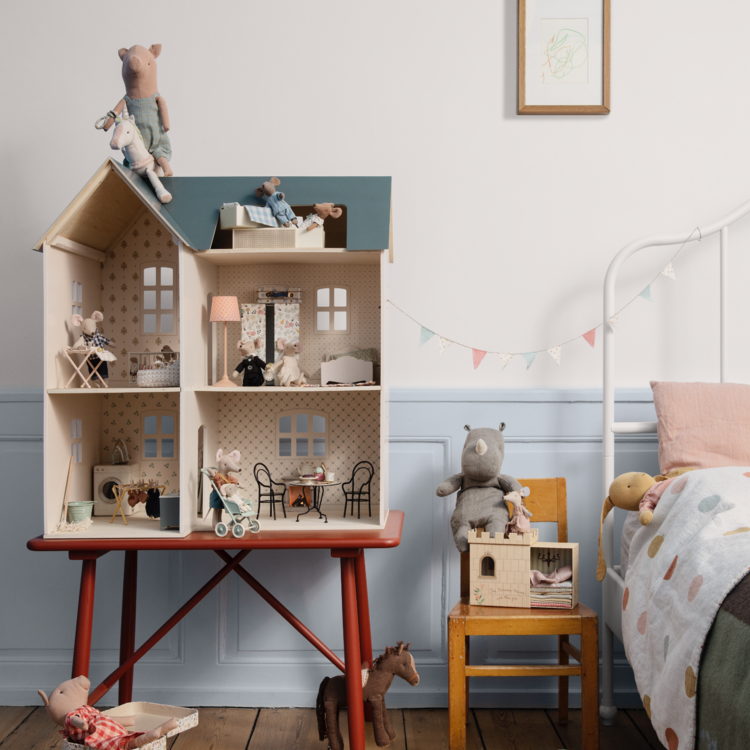 Exclusief houten poppenhuis. Perfect voor muizen, konijntjes en al je Maileg vriendjes. Personaliseer met je favoriete Maileg meubeltjes. Wordt plat verpakt geleverd en is eenvoudig in elkaar te zetten. Gemonteerde afmeting 80x40x72 cm (hxdxb) - wordt geleverd zonder meubilair.
