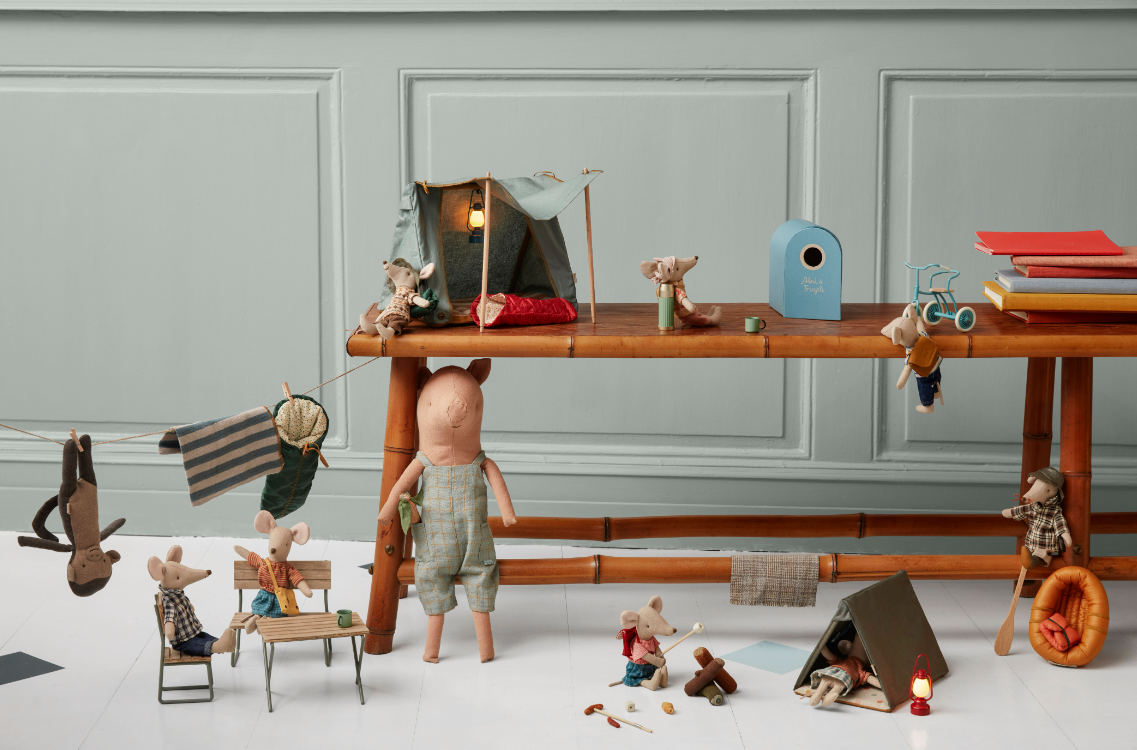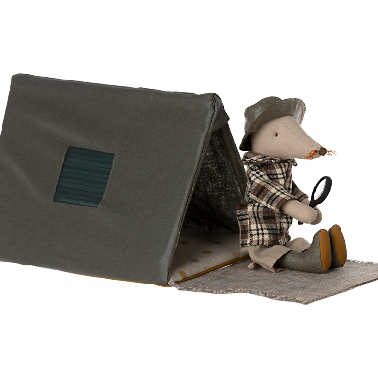 Neem je muis mee voor een logeerpartijtje onder de sterren in de opvouwbare tent. De deken houdt je vriend warm tijdens de nacht. De buitenste stof heeft een gecoat oppervlak voor een authentiekere look.