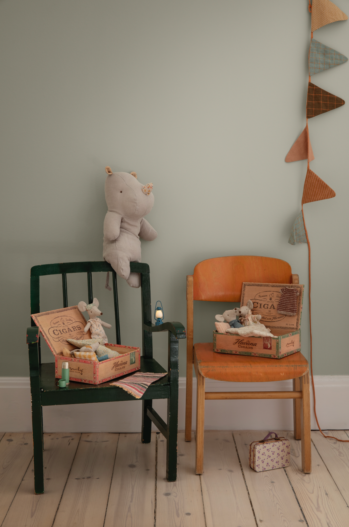 Een klassiek Maileg artikel. Papa en mama muizen dragen hun mooie nachtkleding en oogmaskers. De sigarenkist is een perfect bed voor een goede nachtrust en zoete dromen.
