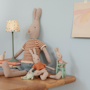 De lamp is gemaakt van metaal en katoen en voorzien van een ingebouwd LED-lichtje dat eenvoudig aan- en uit te schakelen is. Dankzij het compacte formaat past hij moeiteloos in het Maileg “House of Miniatures” en combineert hij prachtig met andere meubels en accessoires. Een stijlvolle finishing touch voor elke Maileg-collectie.