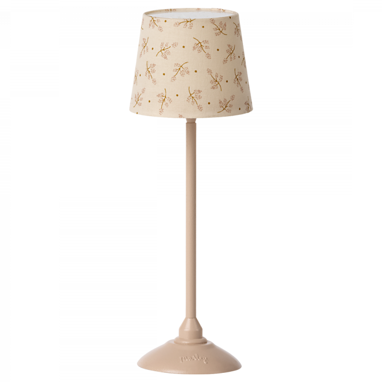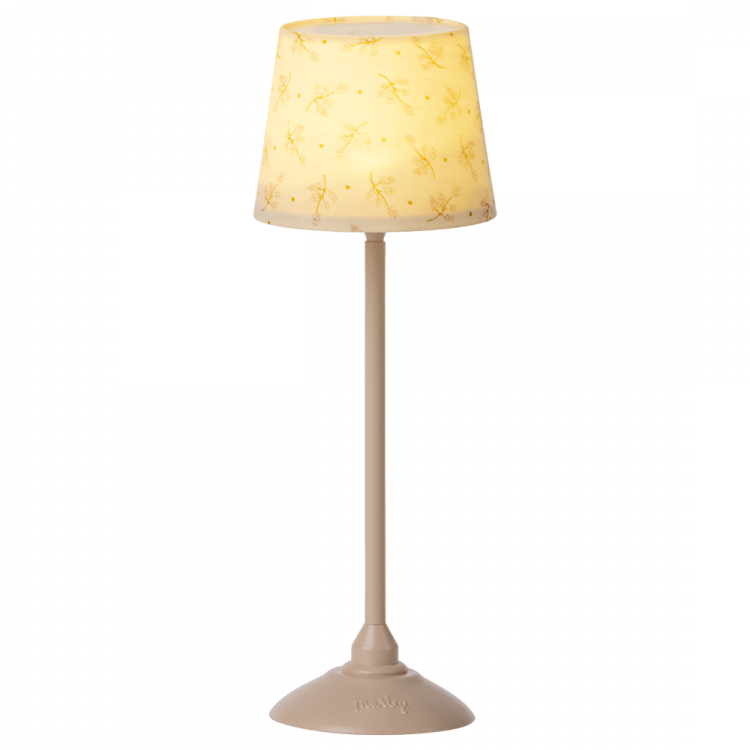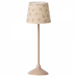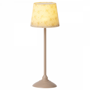 The beautiful Maileg miniature floor lamp is a must-have. The lamp will light up the room with a soft tone - remember to turn off the light when the friends go to bed. The battery can be changed by an adult.