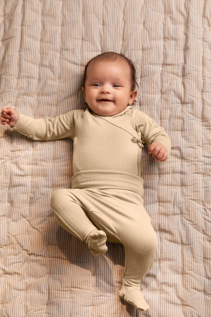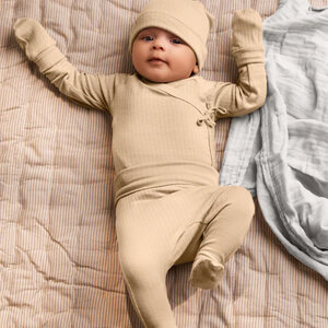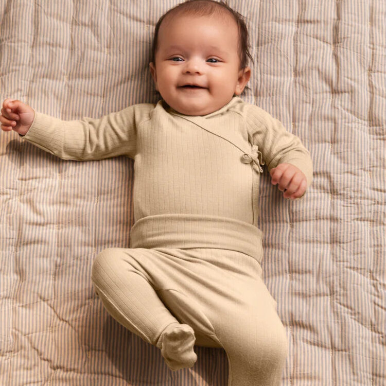 Een prachtige broekje voor newborns. De mega zachte legging is voorzien van voetjes en heeft subtiel elastiek, zodat deze niet afzakt.
