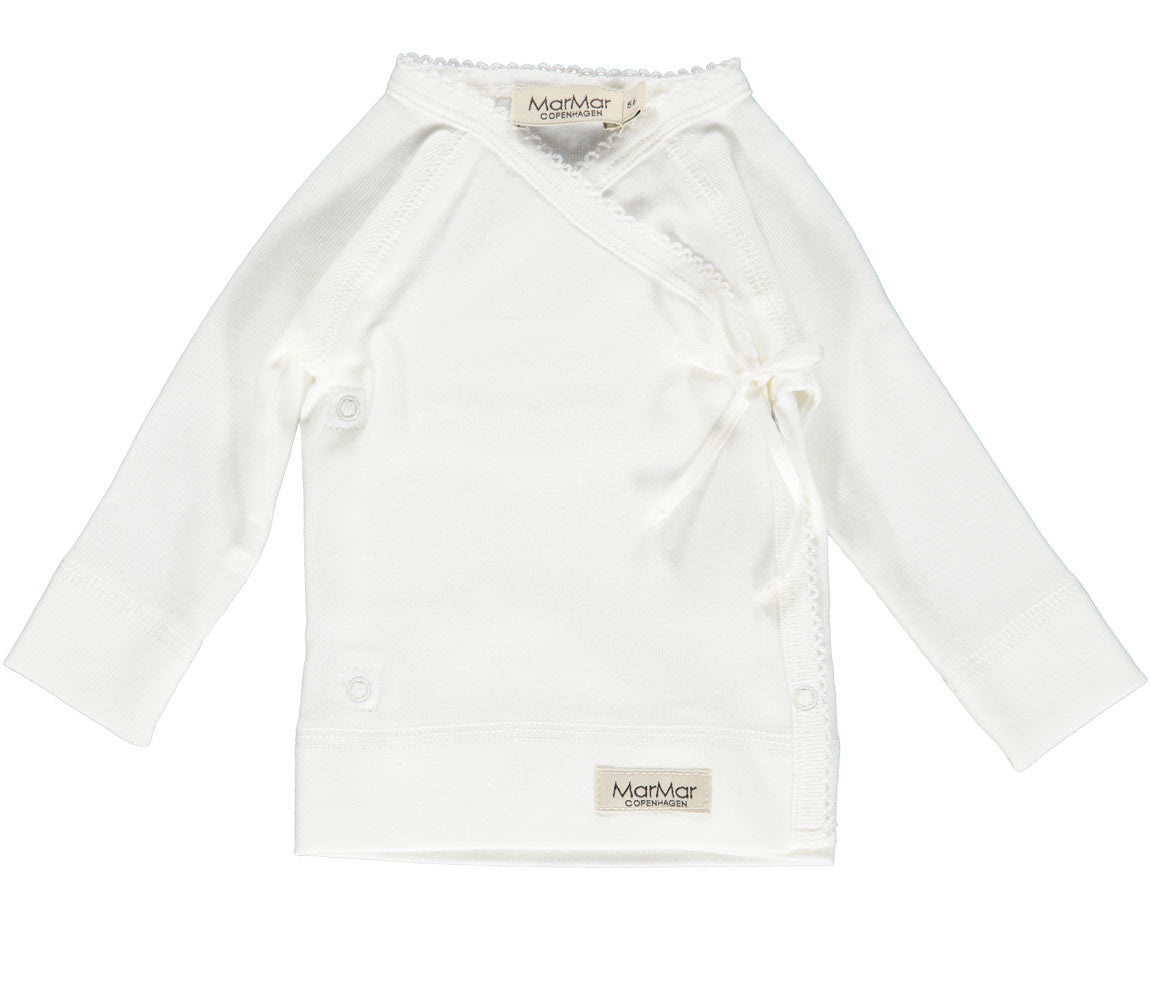 Een prachtige overslag longsleeve voor newborns. Het mega zachte shirtje met lange mouwen wordt gesloten met drukknoopjes en vervolgens kun je een schattig knoopje leggen in de touwtjes.