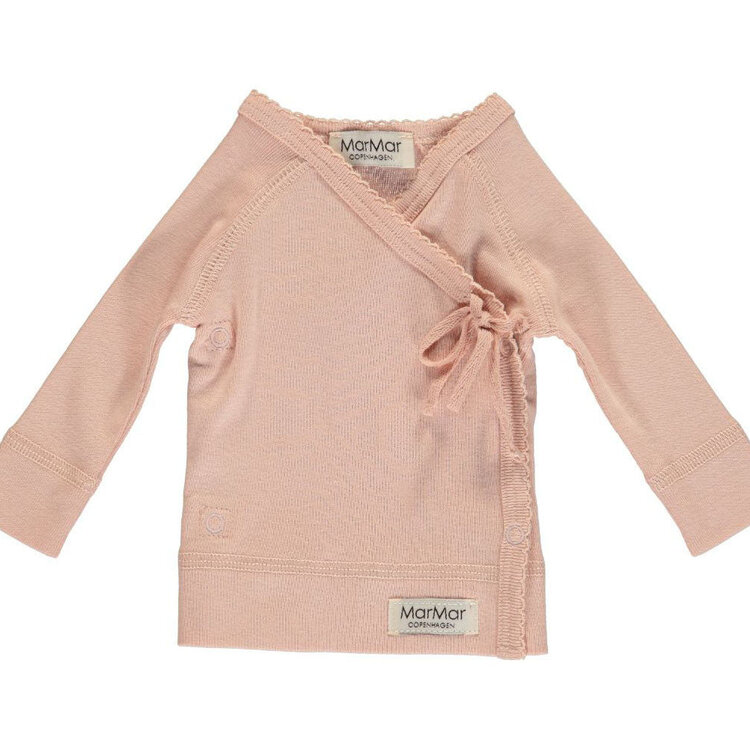 Een prachtige overslag longsleeve voor newborns. Het mega zachte shirtje met lange mouwen wordt gesloten met drukknoopjes en vervolgens kun je een schattig knoopje leggen in de touwtjes.