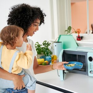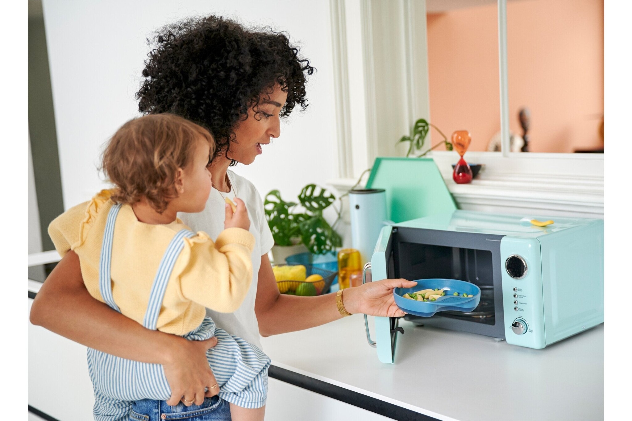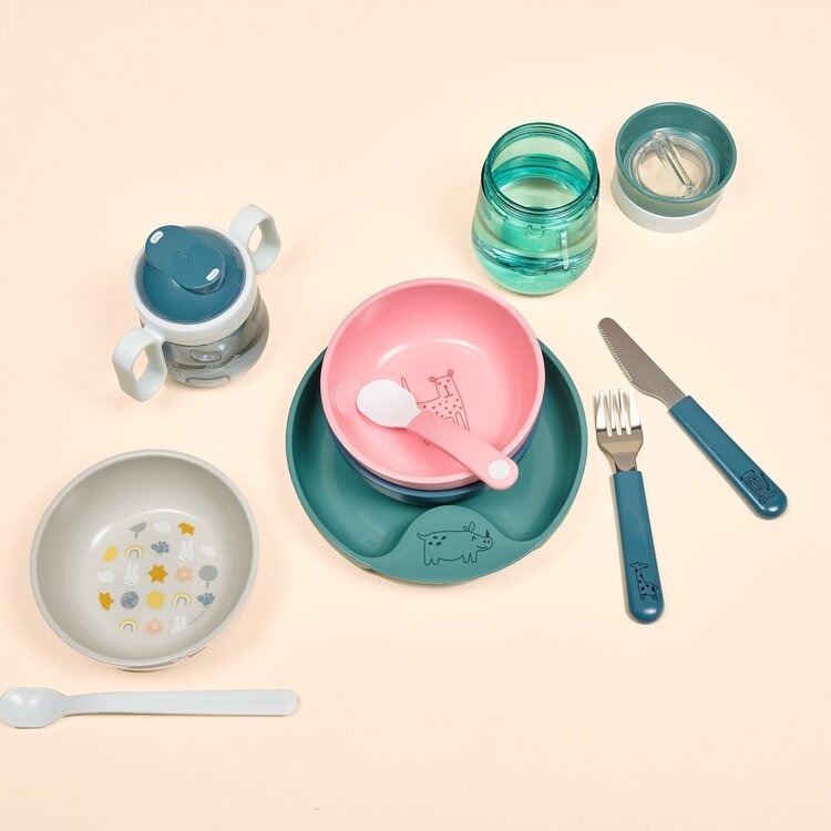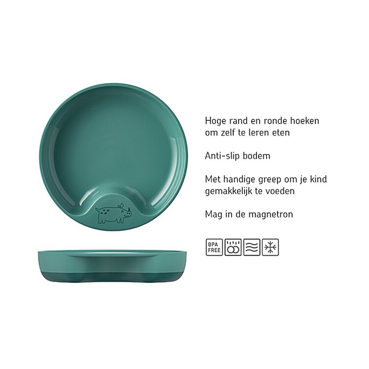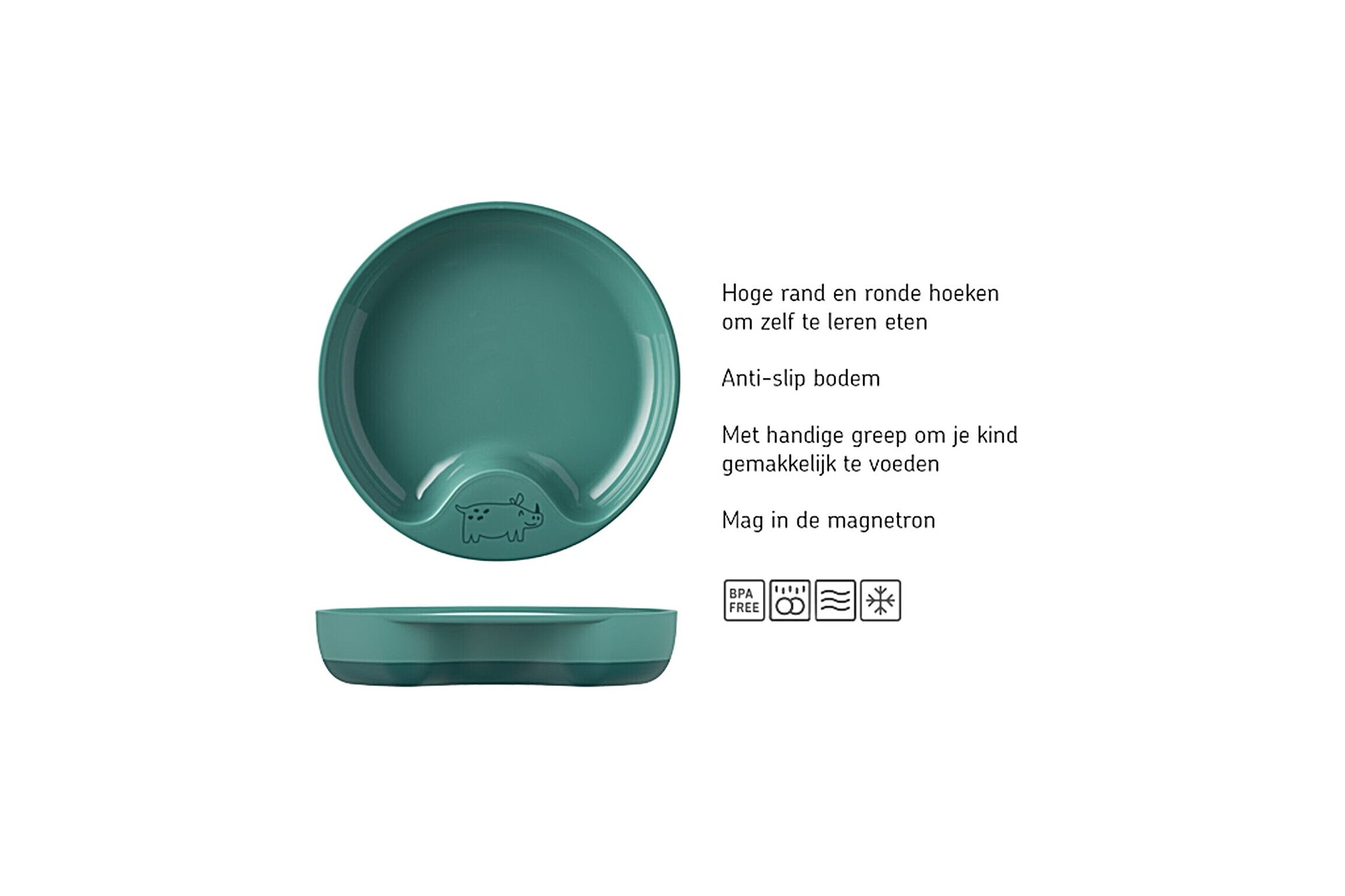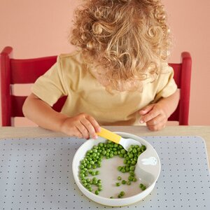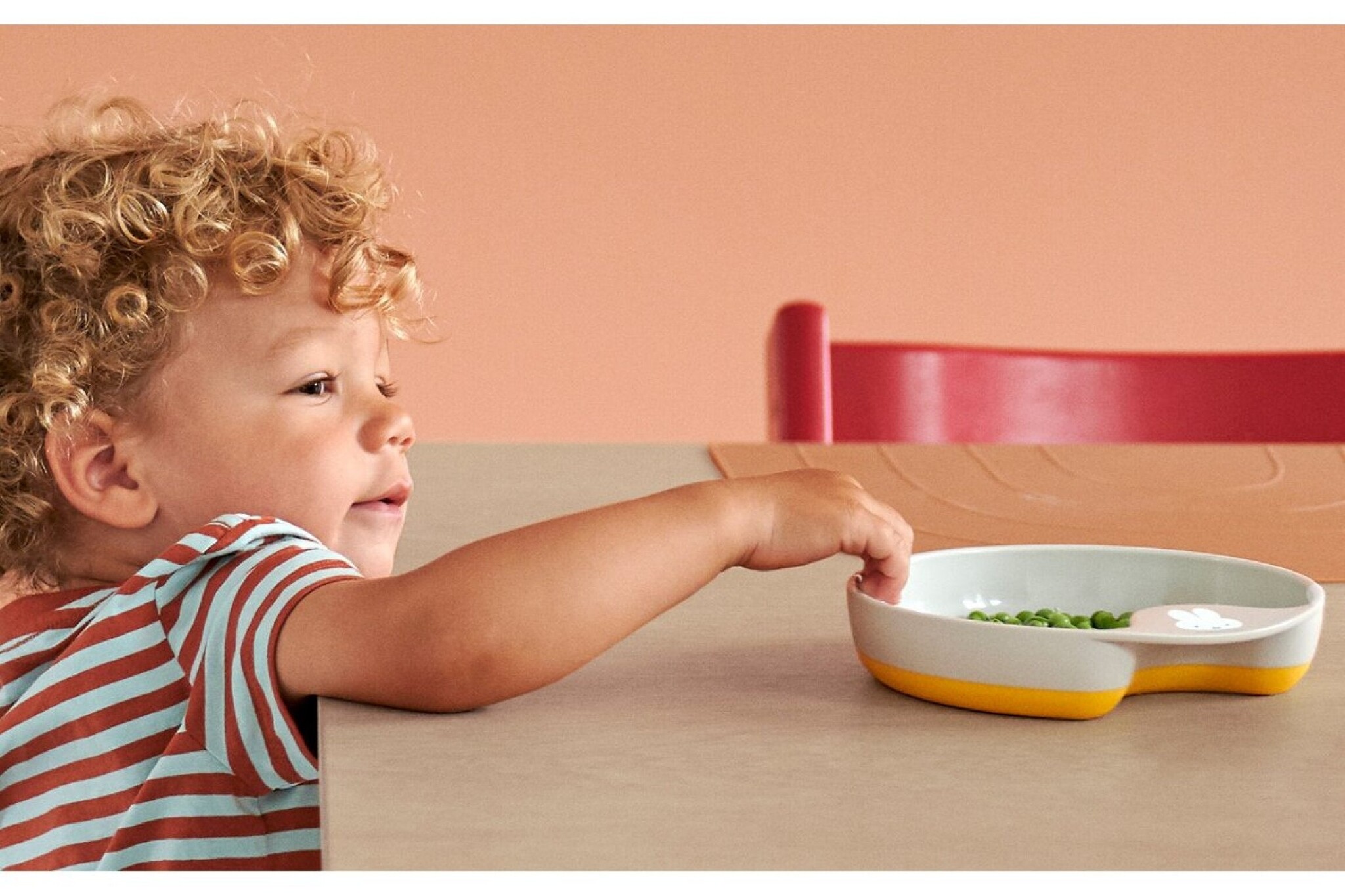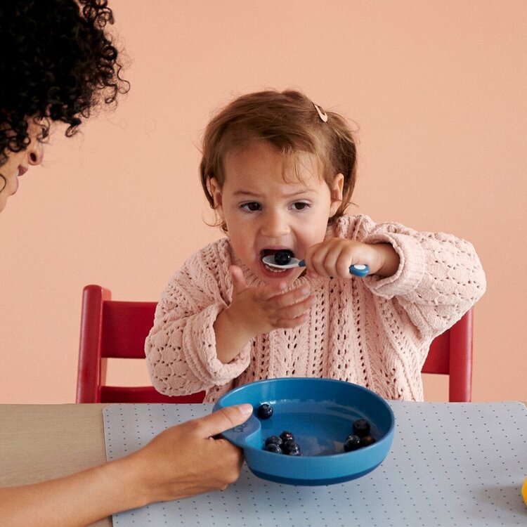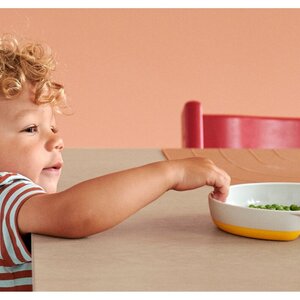 Lekker zelf leren eten, met een beetje hulp van het oefenbord Mepal Mio. Het bord heeft een antislip bodem én en handige knik in de rand. Zo wordt leren eten een stukje makkelijker!