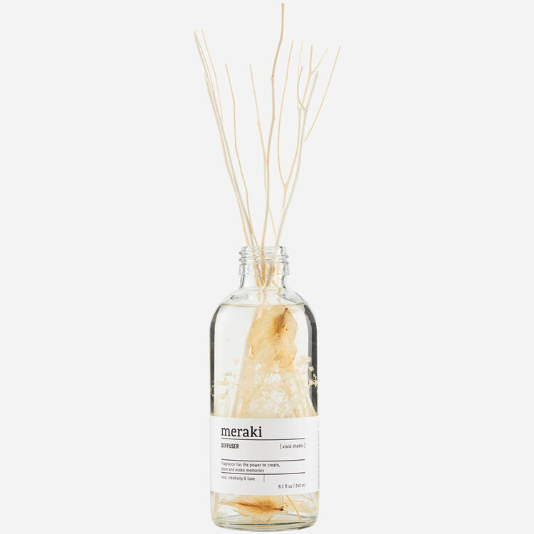Laat je aangenaam verwelkomen door een mild aroma in de badkamer of entree. Meraki presenteert Vivid Shades, een fijne diffuser met een delicate geur die zowel lichaam als geest ontspant. Met zijn eenvoudige en strakke uiterlijk is de diffuser bovendien een stijlvolle toevoeging aan je badkamer. Voeg een chic accent aan je interieur toe door de diffuser samen met andere decoraties op een mooi dienblad te combineren.