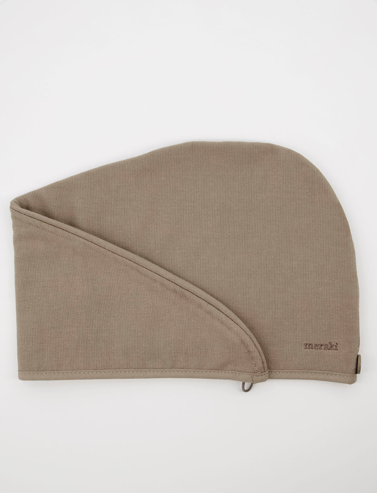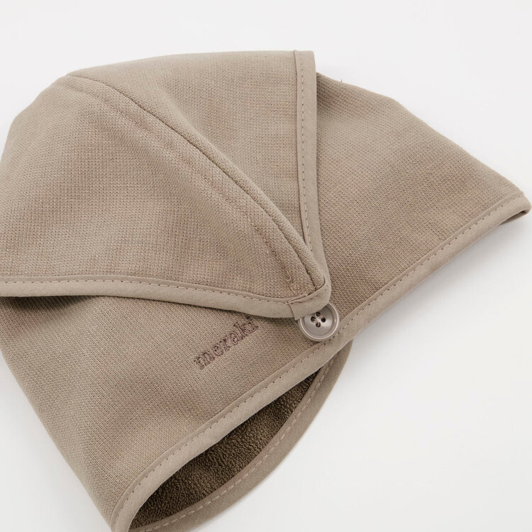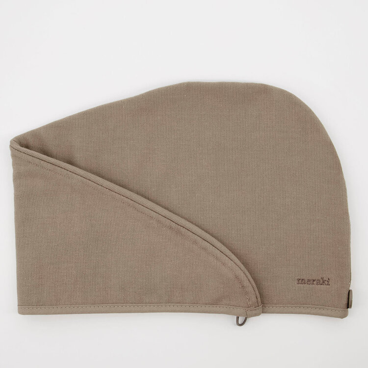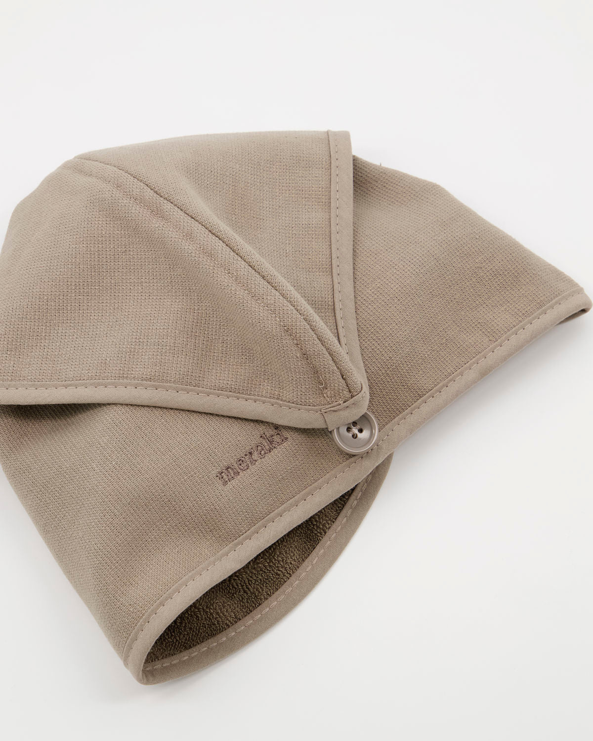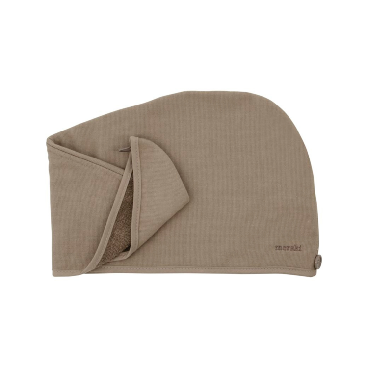 Dry your hair quickly and gently with the Lunaria hair towel from Meraki. When you feel like pampering yourself, wrap your hair in this towel and take your time with the rest of your routine. It is easy to put on thanks to the button at the front. The warm grey colour and the soft terry fabric inside add to the spa-like atmosphere you get by incorporating this towel into your everyday beauty regimen.
