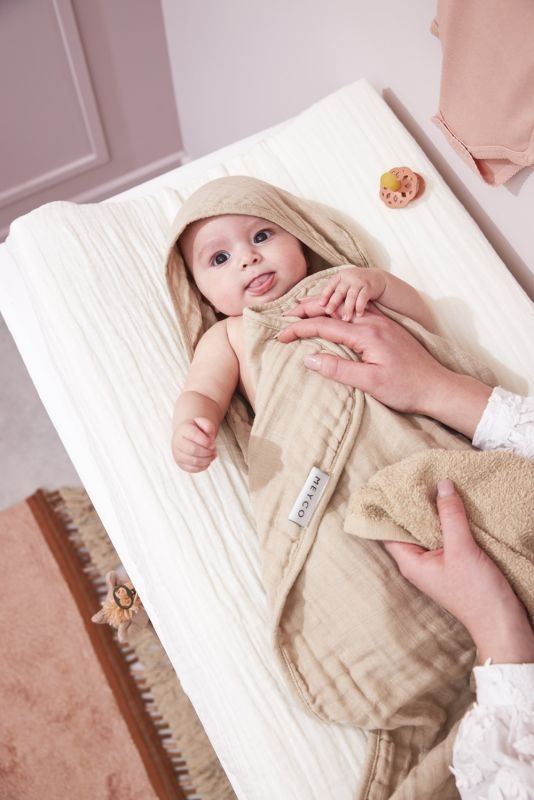 Tip! Leg een Meyco Baby hydrofiele luier op het aankleedkussen zodat je niet bij elk ongelukje hoeft te wassen.