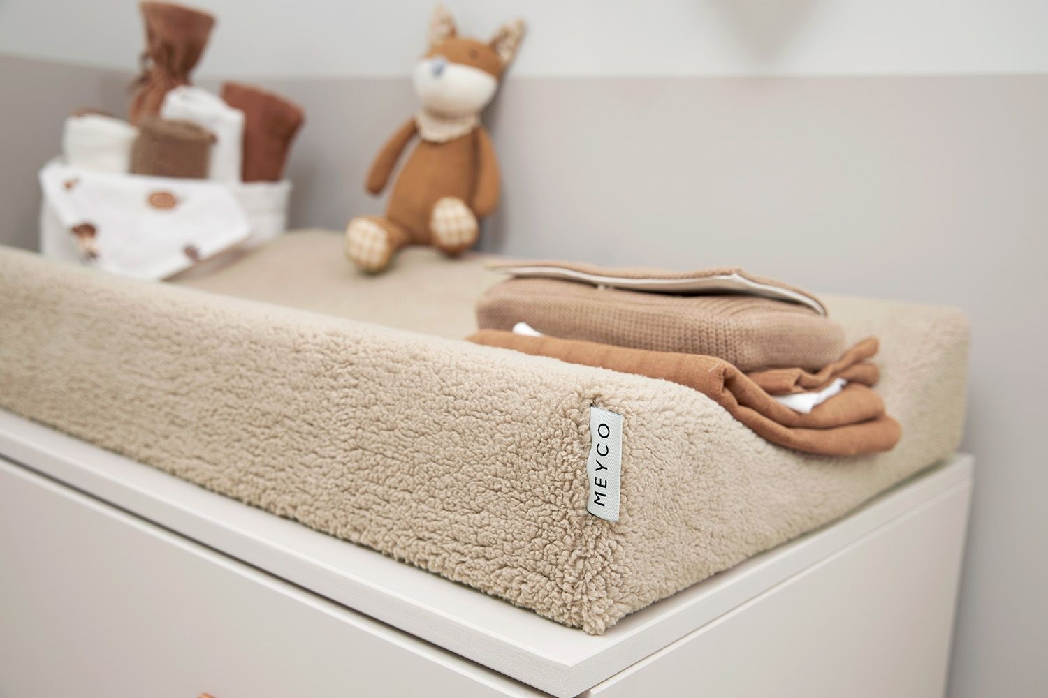 Met deze zachte Meyco Baby aankleedkussenhoes Teddy wordt het verschonen van jouw kleintje een feestje! De aaibare teddy stof zorgt ervoor dat jouw kindje comfortabel ligt tijdens het verschonen of aankleden. De hoes houdt niet alleen jouw aankleedkussen schoon, maar is ook nog eens heel stijlvol. Deze furry aankleedkussenhoes wordt dus gegarandeerd dé eyecatcher op jouw commode.