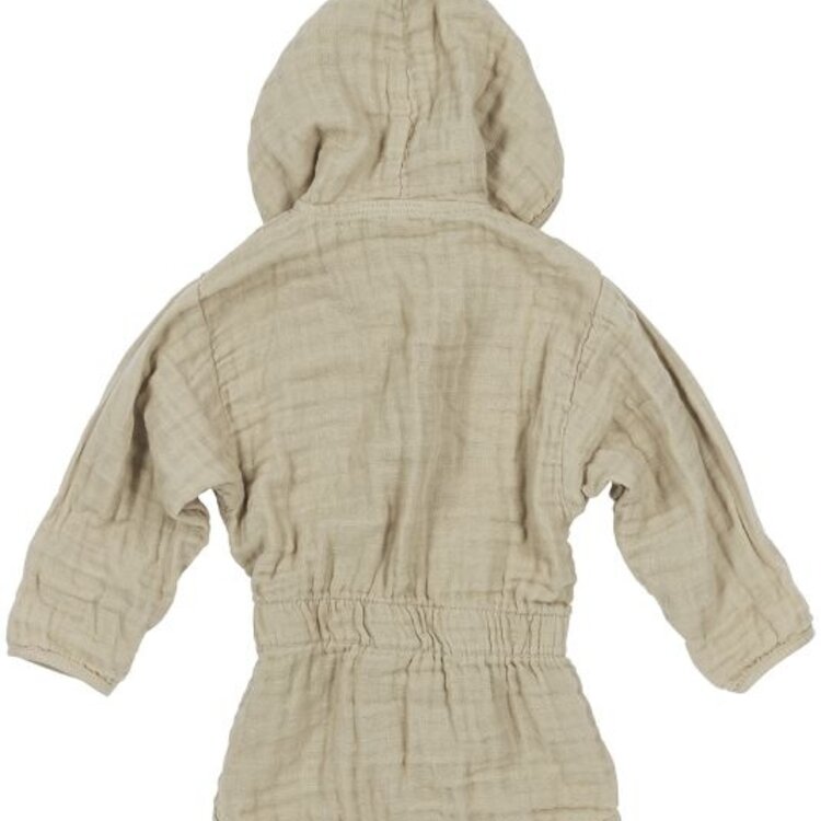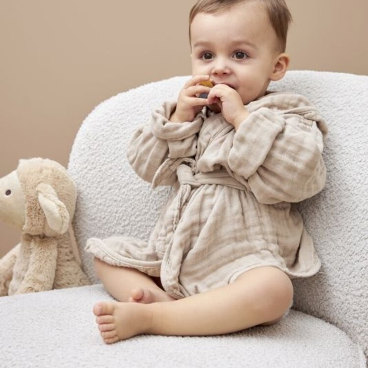 Het badjasje heeft mooie details en is prachtig afgewerkt, kijk maar eens naar de capuchon en getailleerde rug met twee vaste koordjes voor een goede pasvorm. Tijdens een lekkere luie ochtend in de pyjama biedt deze badjas extra warmte én het ziet er ook nog eens hartstikke leuk uit!