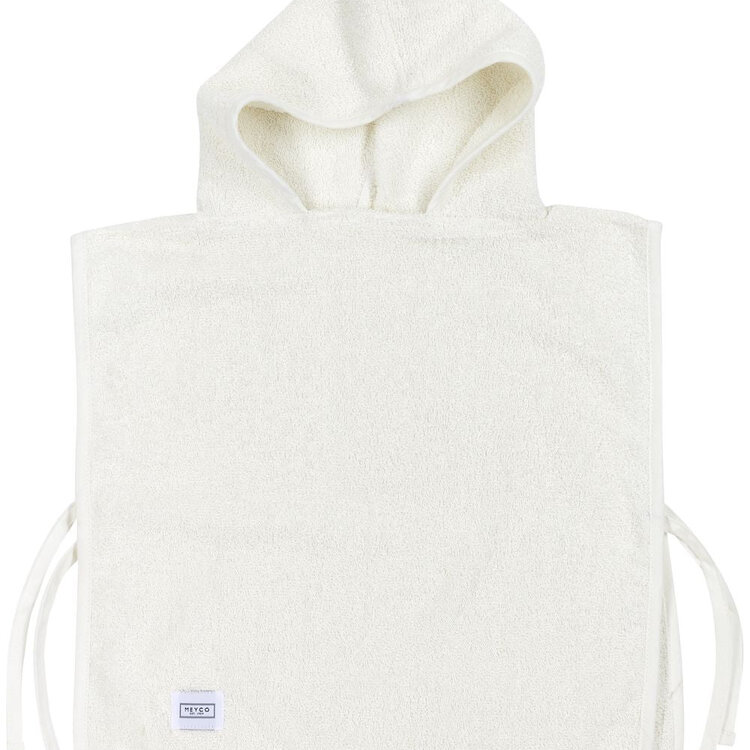 Deze Meyco Baby Badponcho 1-3 jaar Basic Badstof Uni is een uitkomst als je met je kleintje gaat zwemmen, maar is ook ideaal na het douchen of badderen. Je doet de poncho heel eenvoudig aan over het hoofdje dankzij de open zijkanten. De zijkanten hebben smalle strikbandjes waarmee je de poncho vast kunt maken.