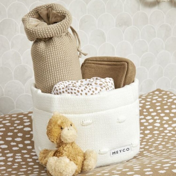 Berg de verzorgingsspullen of speelgoed van je kindje op in deze gebreide commodemandjes. De manden zijn mooi afgewerk en door de afneembare binnenkant is een lekkend flesje geen probleem. Combineer de mandjes met de andere items uit de Knit basic collectie en creëer een droomkamertje voor je baby.