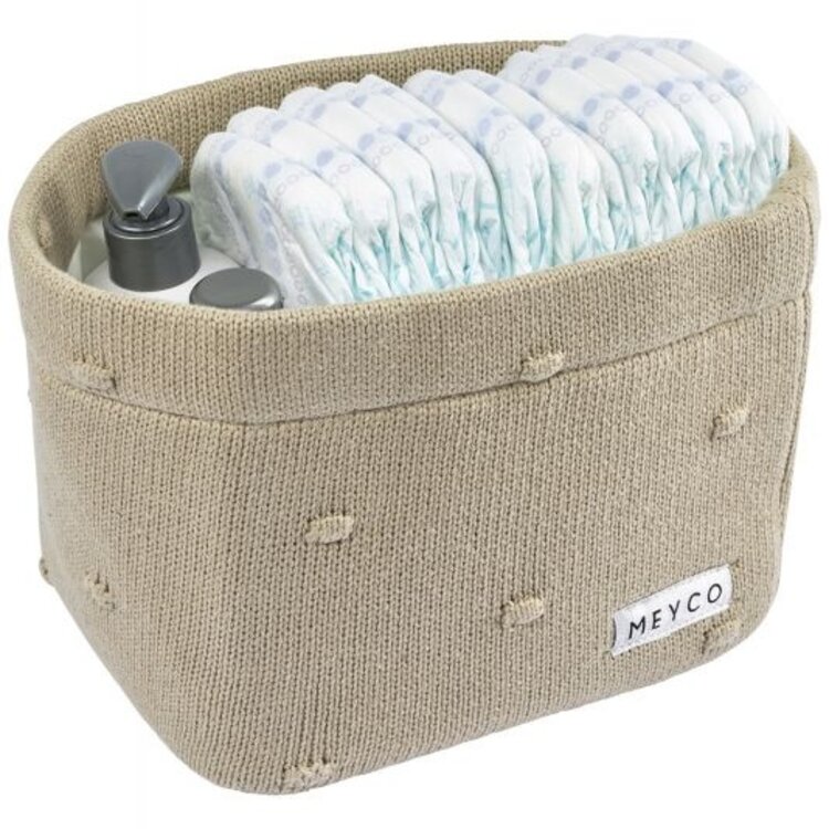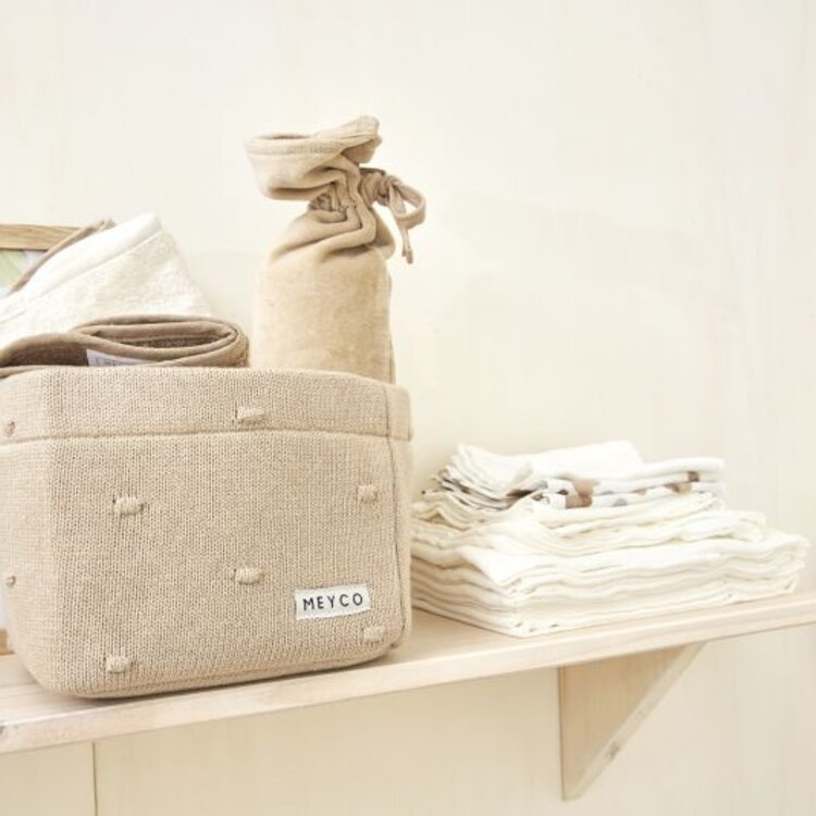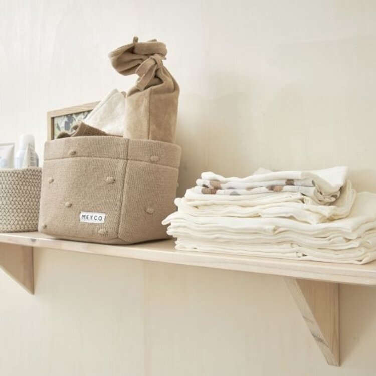 Dit gebreide Meyco Baby Commodemandje Mini Knots ziet er niet alleen leuk uit, het is ook nog eens erg praktisch in de babykamer. Zet hem dichtbij of óp de commode en berg er alle verzorgingsproducten (of speelgoed) in op. Zo blijft alles netjes bij elkaar en heb je het zo bij de hand. Handig! De opliggende, gebreide mini knopen geven het mandje nét een wat speelser effect.Tip: Is de Mini Knots collectie net niet jouw smaak? Kijk dan eens naar onze reguliere Knots collectie!