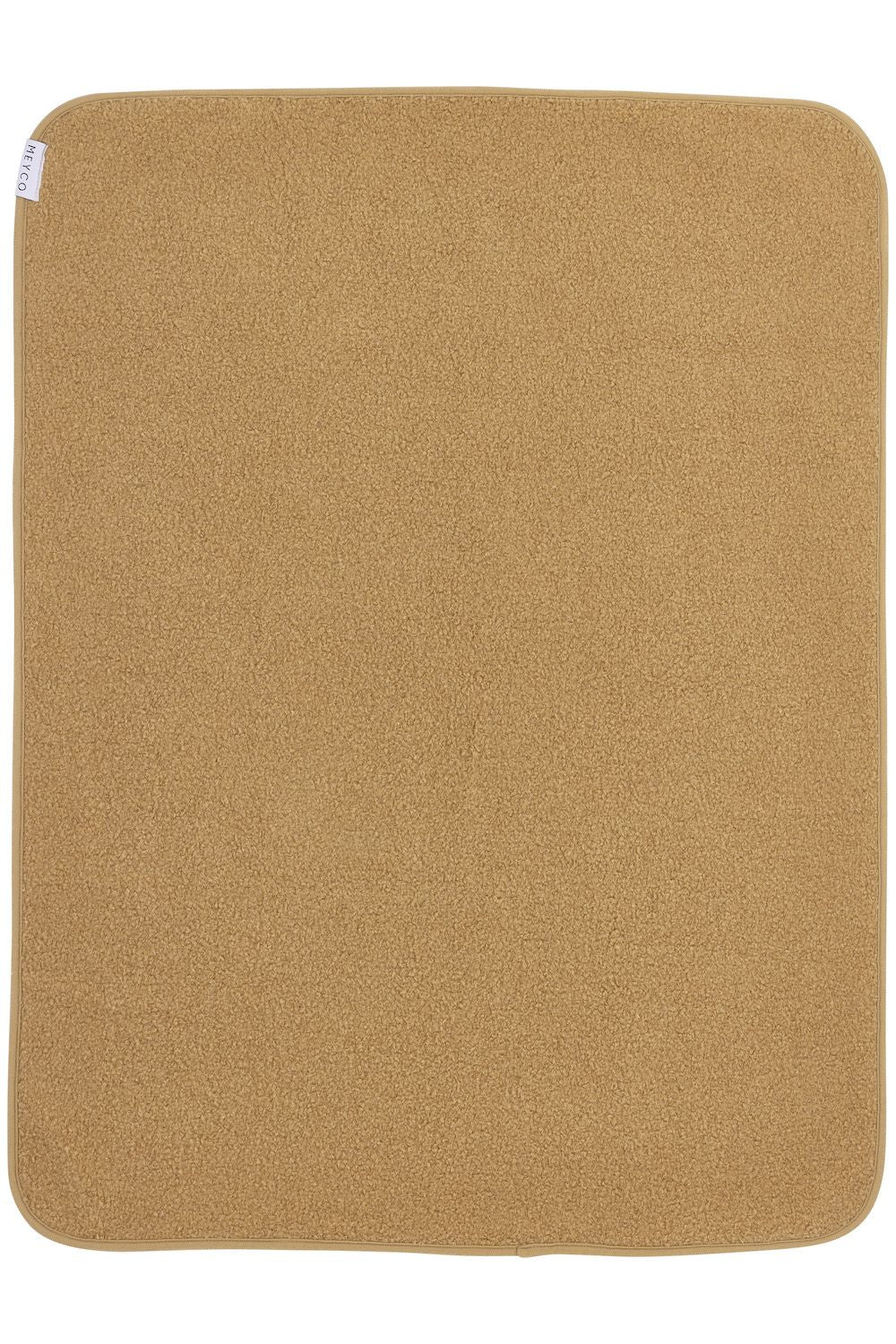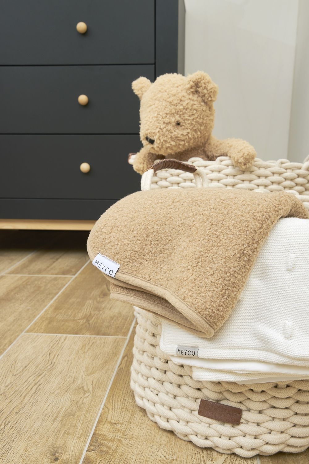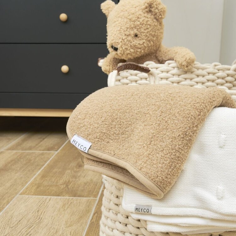 Het dekentje is gemaakt van bouclé, 100% polyester. Daardoor voelt het superzacht en lekker warm aan. Ideaal voor onderweg in de auto of wandelwagen, of lekker voor thuis op de bank. Doordat het gemaakt is van polyester is de stof niet ademend, daarom is het dekentje minder geschikt om het bedje mee op te maken.