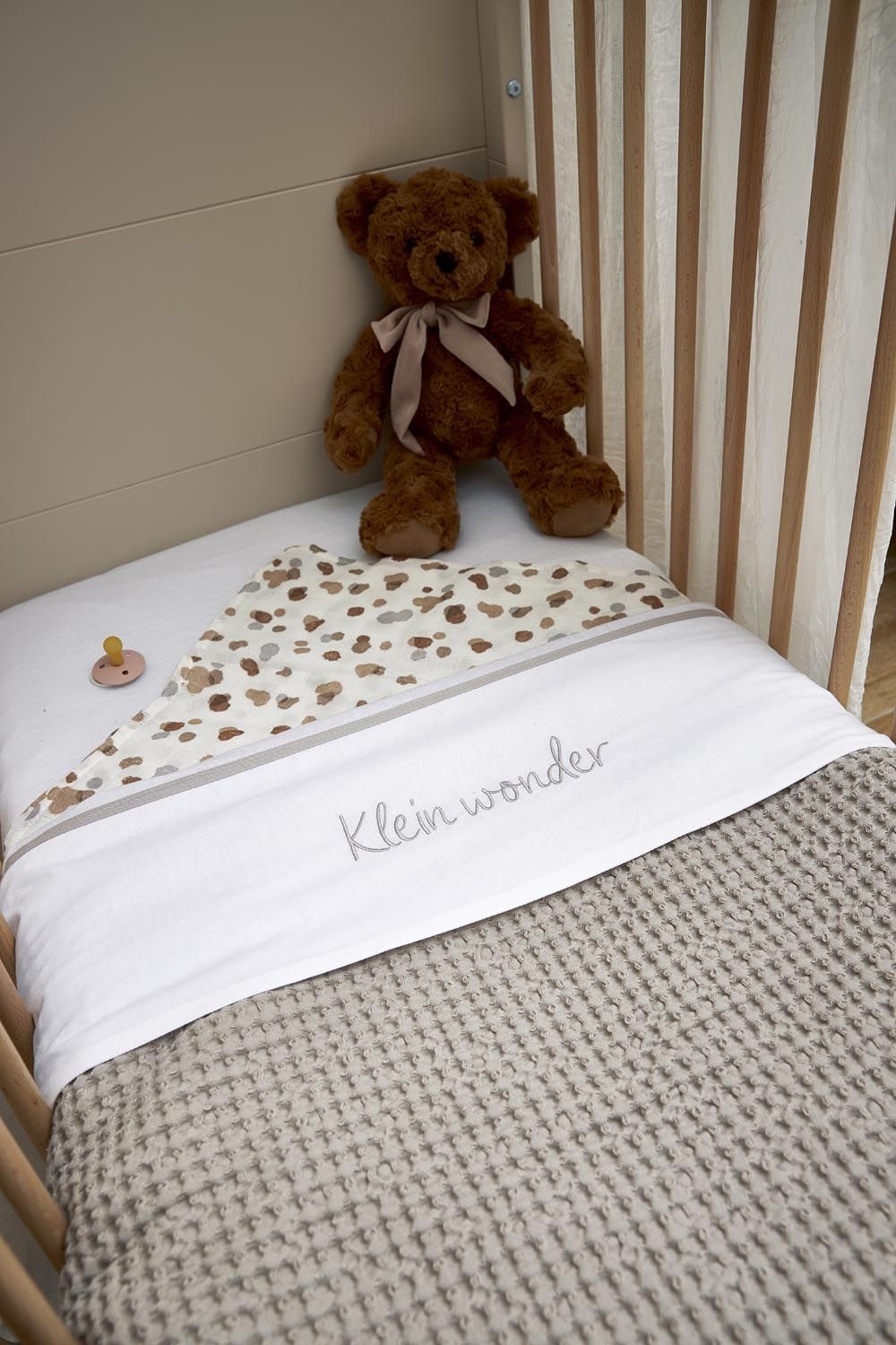 Laat je kleintje wegdromen onder de Meyco Baby Deken Wafel Teddy Greige. De wafelstructuur van katoen aan de voorkant van de deken en de zachtheid van de teddy achterkant zorgen voor een extra laag comfort en warmte. De deken heeft TOG-waarde 2.0. Hoe hoger de TOG-waarde, hoe warmer.