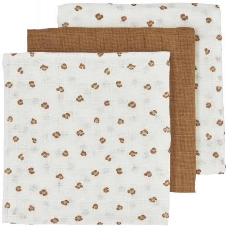 Deze set is bedrukt met een vrolijke Mini Panther print. Deze veelzijdige doeken in het formaat 70x70 cm, zijn gemaakt van 100% katoen. Dé uitkomst als handdoek na het badje. Het hydrofiele katoen droogt snel en neemt vocht goed op, waardoor je je kleintje zelfs bij de kleinste plooitjes goed droog kan deppen. De stof voelt erg zacht aan en dat is precies wat tere babyhuidjes nodig hebben.