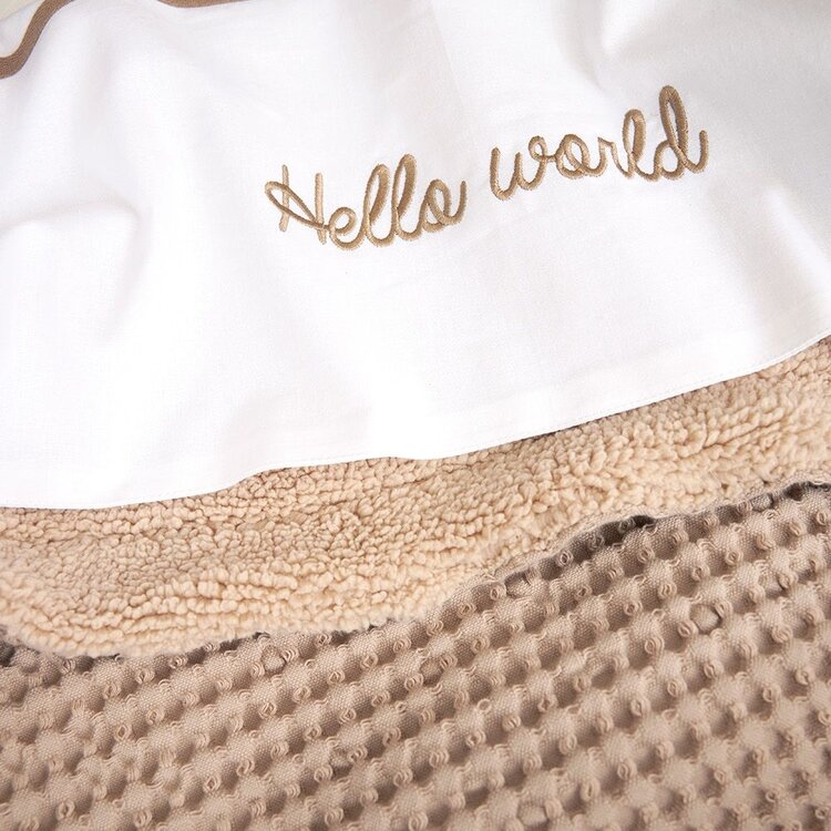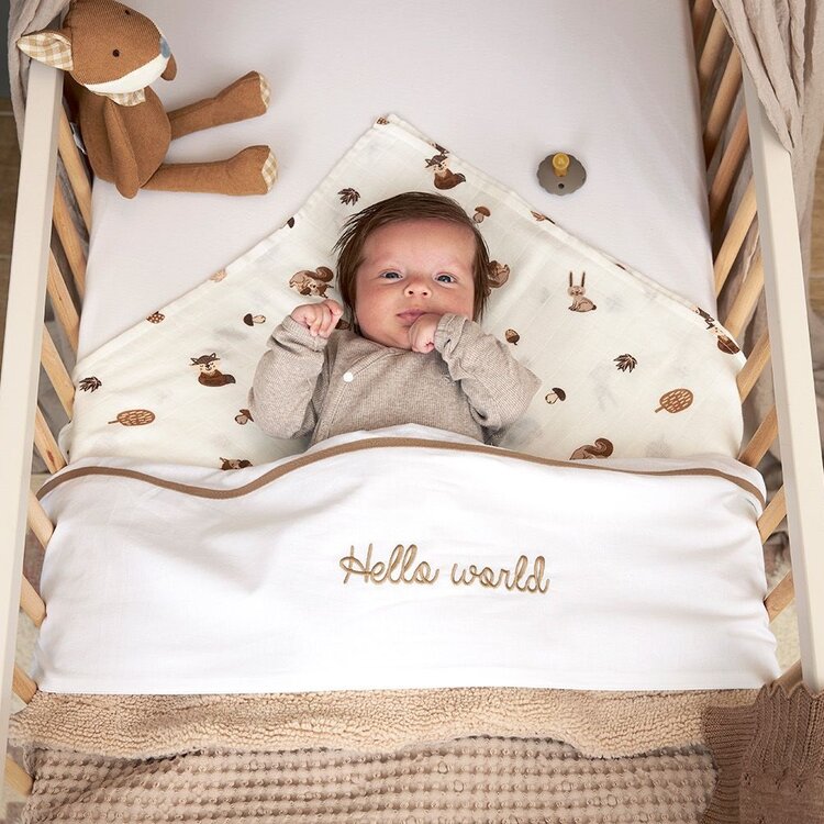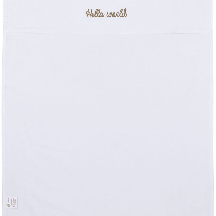 Een ding is zeker: met dit Meyco Baby laken Hello World geniet jouw kindje van een comfortabele nachtrust. Het lakentje voelt dankzij de 100% katoenen kwaliteit namelijk heerlijk zacht aan. Het natuurlijke materiaal ademt goed en neemt vocht uitstekend op. Je kindje ervaart hierdoor een droog en fris slaapklimaat. Het witte lakentje heeft een gekleurde bies op de omslagstrook met de tekst ‘Hello World’.