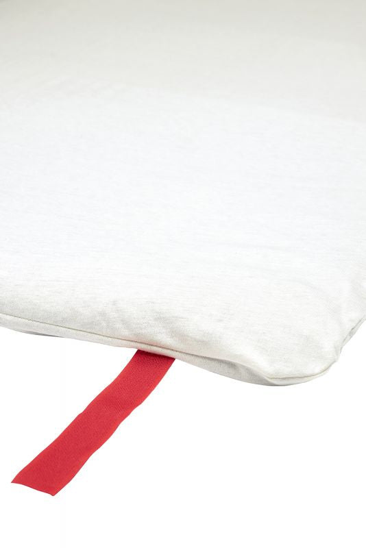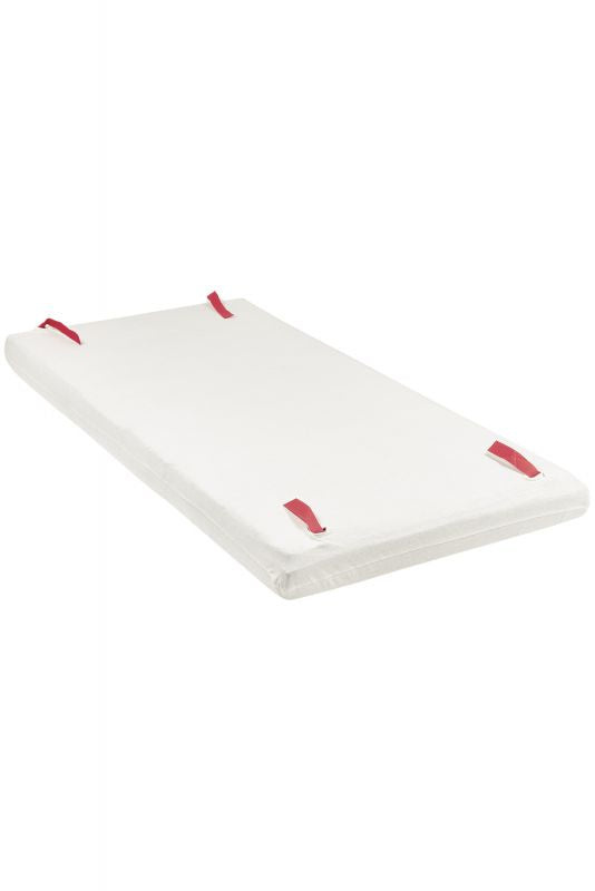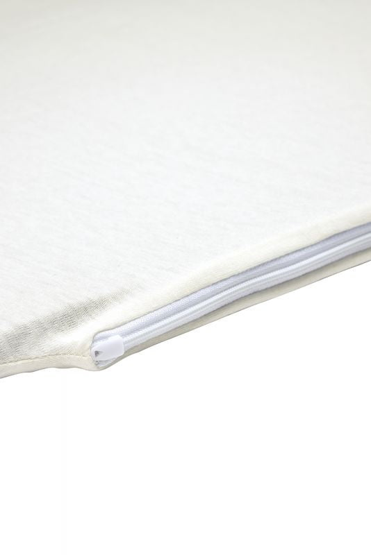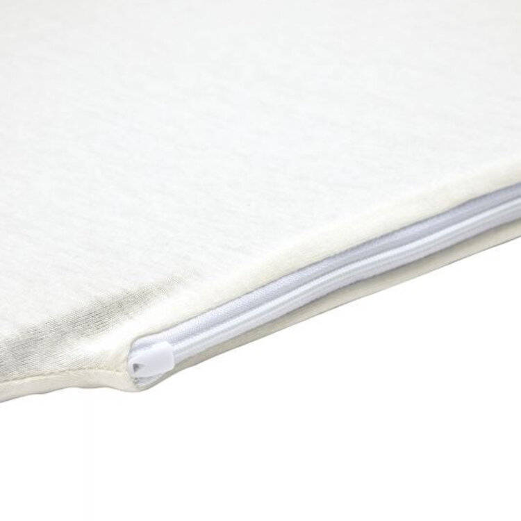 De matrashoes is gemaakt van 100% jersey katoen. Daardoor is de stof goed rekbaar, ademt het goed en voelt heerlijk zacht en comfortabel aan. Ook heeft de onderkant van deze hoes vier gaten waardoor de linten van het matrasje door de hoes heen kunnen en op die manier het matras veilig aan de bodem kan worden bevestigd. Hierdoor kan je kindje niet tussen het matrasje en de bodem terecht komen en daardoor extra veilig.