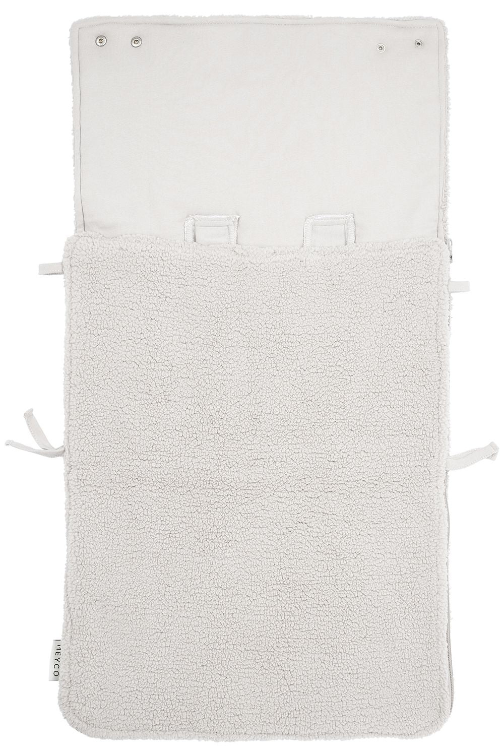 Eropuit met je kleintje? Met deze zachte Meyco Baby voetenzak Teddy zit hij of zij er altijd heerlijk comfortabel en warm bij. Dankzij de zachte teddy stof voelt de voetenzak heerlijk zacht. De zak kun je eenvoudig open- en dichtmaken met een rits. Als het te warm wordt, kun je de voetenzak dus even openzetten, bijvoorbeeld als je langere tijd in de auto zit. Met de handige drukknopen aan de bovenkant van de voetenzak kun je een mutsje creëren, zo blijft het hoofdje van jouw kindje ook lekker warm. Handig!