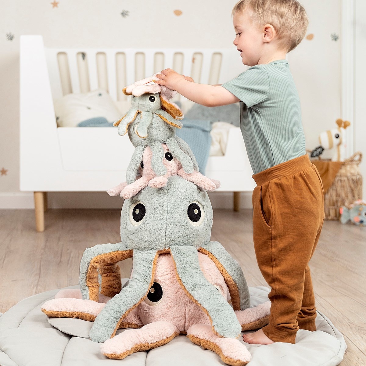 Lekker liggen met jelly de octopus knuffel, de superzachte en vertrouwende zeevriend.