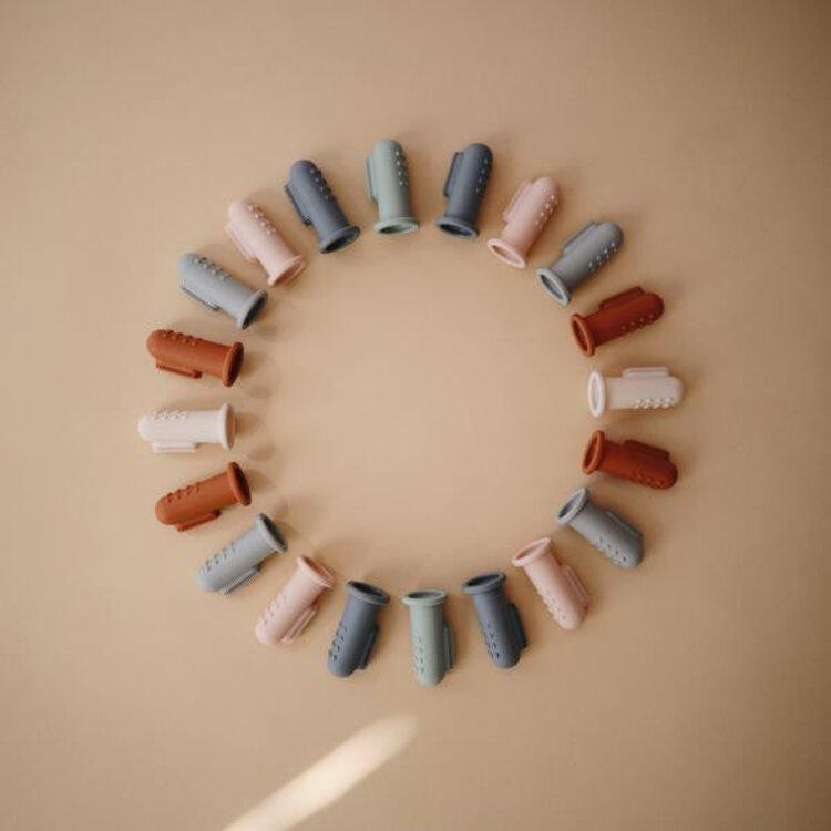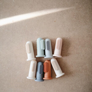 Deze handige siliconen vingertandenborstel van Mushie is makkelijk om je vinger te plaatsen en voelt super zacht aan in het mondje van jouw kleintje. Geschikt om spelenderwijs jouw kindje gewend te laten raken aan tandenpoetsen. Daarnaast kan het ook de pijn bij doorkomende tandjes verlichten.