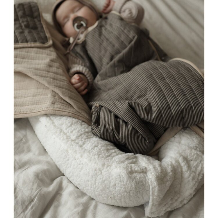 Het trekkoord moet aan het uiteinde altijd in een knoop worden vastgemaakt; Vergeet niet om het hoofdje van de baby altijd in de tegenovergestelde richting van de touwtjes te plaatsen, gebruik de koker op een vlakke ondergrond. Het product mag niet in bed worden gebruikt terwijl het kind slaapt zonder ouderlijk toezicht.