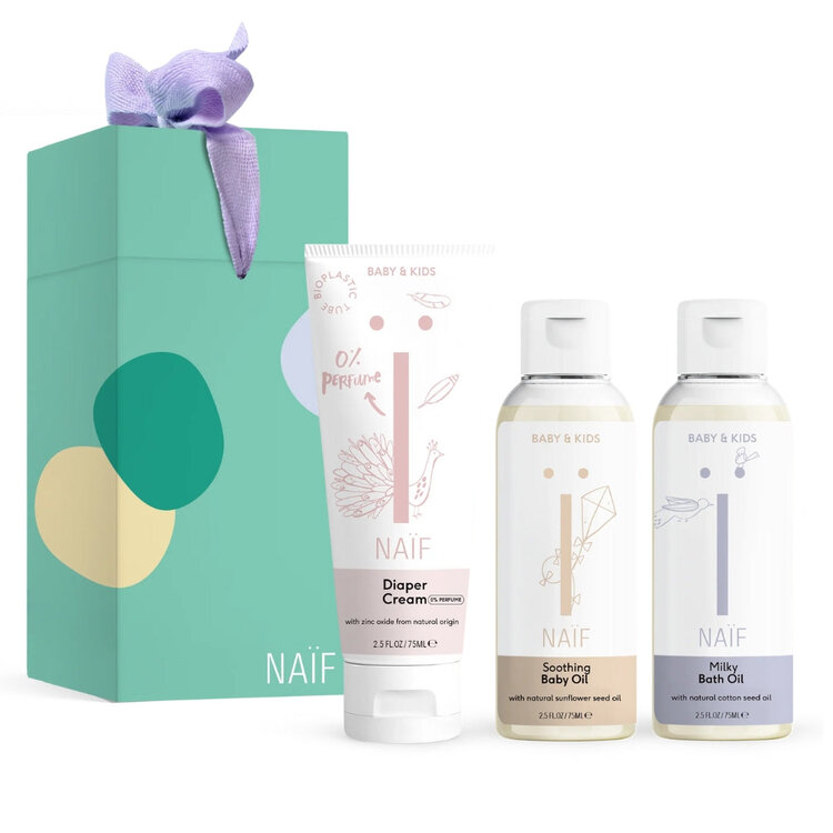 Alles wat je nodig hebt ter verzorging van een pasgeboren baby. Van eerste babybad, het verschonen van de eerste luier of een babymassage voor bonding en buikkrampjes. De Naïf Newborn Essentials bevatten alle producten om een zorgeloze start mee te geven tijdens de eerste weken van de kleine. Wist je dat dezelfde producten ook worden gebruikt op de kraamafdeling in het ziekenhuis. Zijn we trots op. Kortom: aan dit pakket heb je een goede.