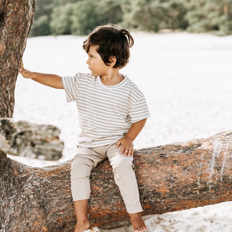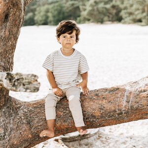 Hier hebben we t-shirt Sem. Eindelijk een super tof unisex t-shirt. Een mooi oversized model met een offshoulder. Comfortabele fit door de zachte katoenen stof en fijne pasvorm. Leuk om te combineren met andere Navy Natural items.