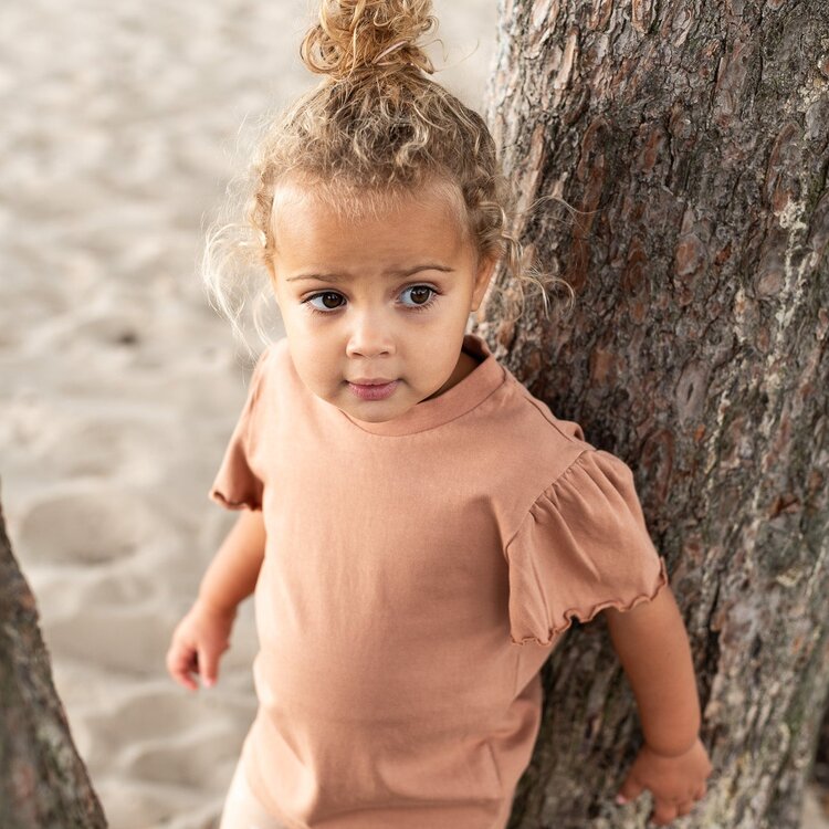 Deze ruffle top van Navy Natural is voorzien van schattige ruffle mouwen. Comfortabele fit door de zachte katoenen stof en fijne pasvorm. Leuk om te combineren met andere Navy Natural items.