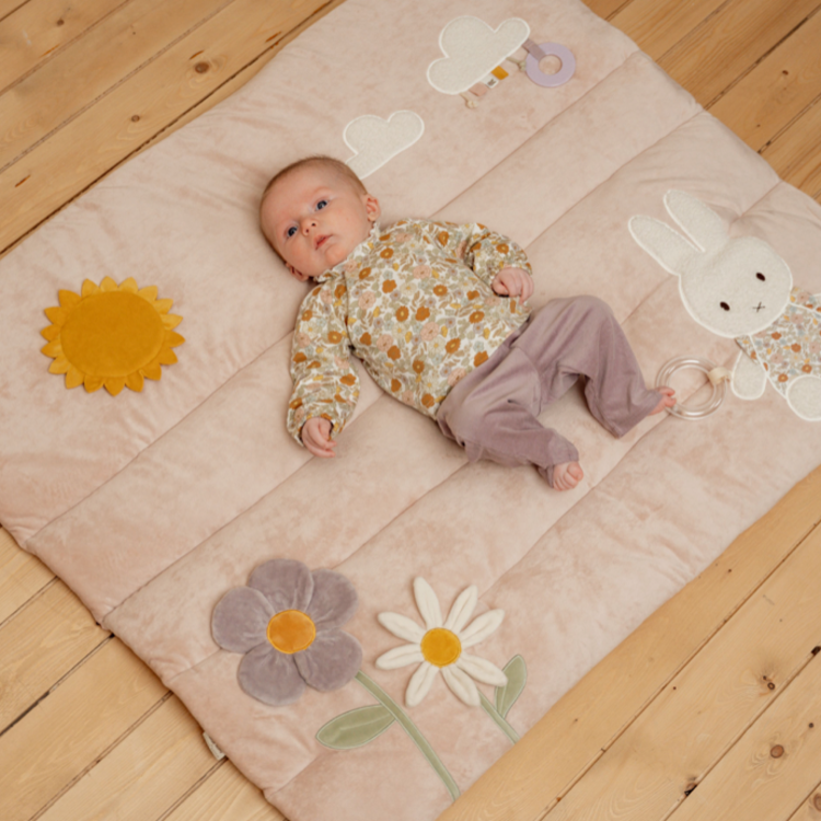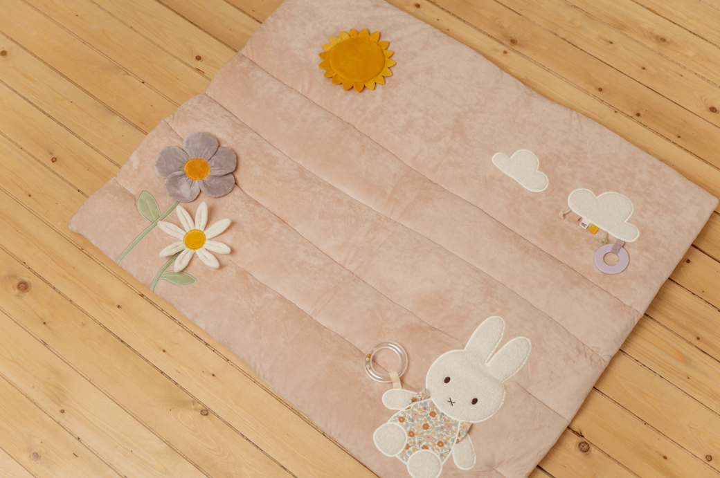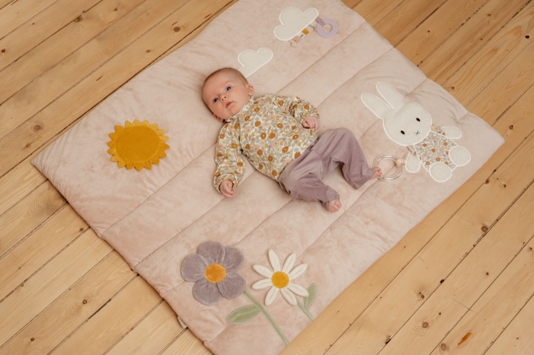Dankzij dit fijne boxkleed uit de Nijntje x Little Dutch Vintage Little Flowers collectie ligt je kindje heerlijk comfortabel in de box. Het kleed heeft een zacht roze kleur en verschillende elementen die vast te pakken zijn zoals een bijtring. Het boxkleed kan ook los gebruikt worden als speelkleed op de vloer. Zo kan je kindje heerlijk liggen, kruipen, spelen en de omgeving gaan verkennen! Het boxkleed is gemaakt van hoogwaardig materiaal en past in vrijwel iedere box.