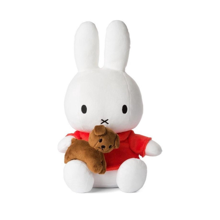 Deze schattige Nijntje-knuffel van 33 cm wordt geleverd met haar trouwe vriendje Snuffie. Samen vormen ze een onweerstaanbaar duo dat kinderen uitnodigt tot knuffelen en spelen. Met hun zachte stof en herkenbare uitstraling brengen Nijntje en Snuffie direct warmte en gezelligheid in de kinderkamer.