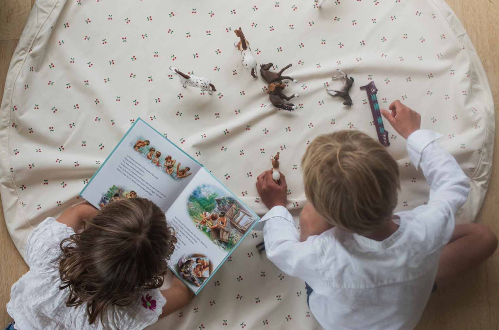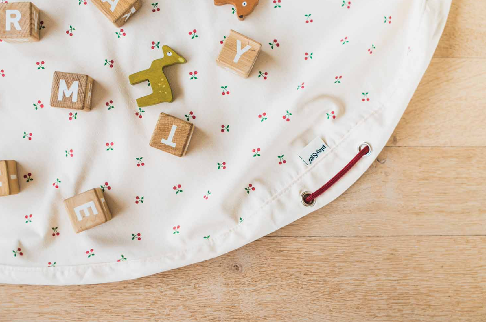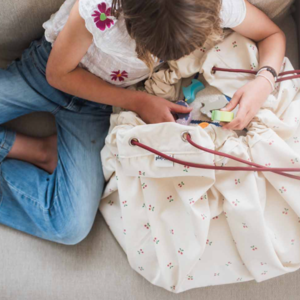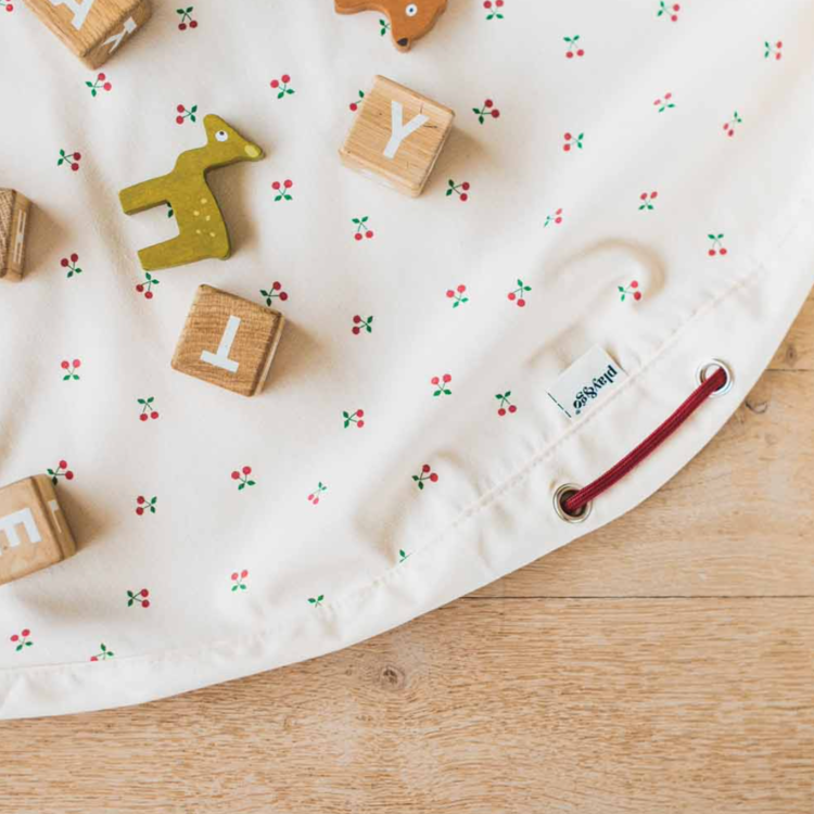 Omarm de fusie van vernuft en gemak met ons 2-in-1 Speelkleed en Opbergtas, met levendige kersenrode prints. Verhoog de speeltijd, vereenvoudig het opruimen en leg de ware essentie van elk avontuur vast.